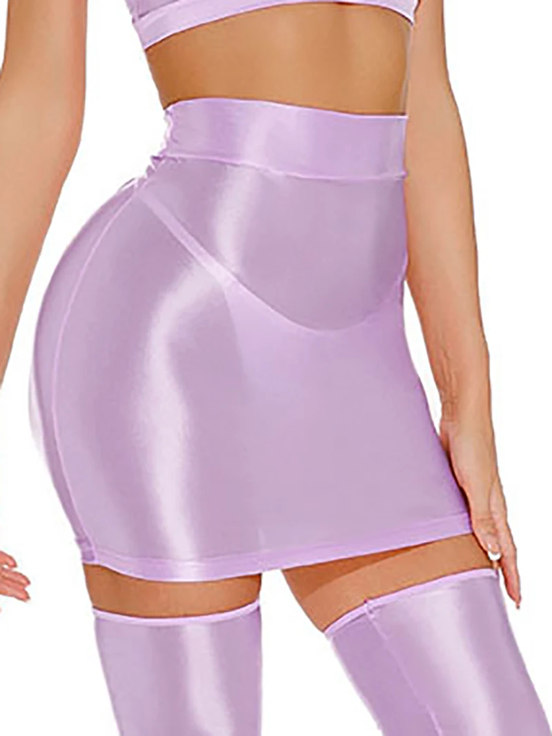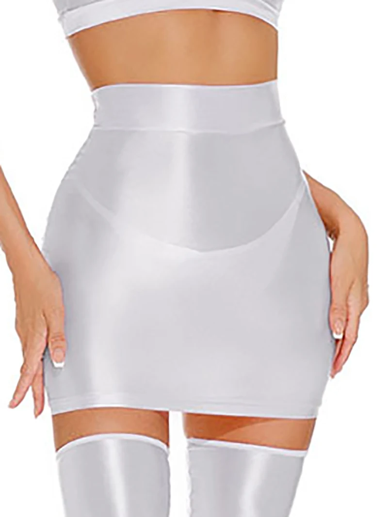 Women Adult Pole Nightclub Party High Elasticity Glossy Silk Sexy Transparent Ultra Short Mini Skirt Rhythmic Swimsuit Dancewear