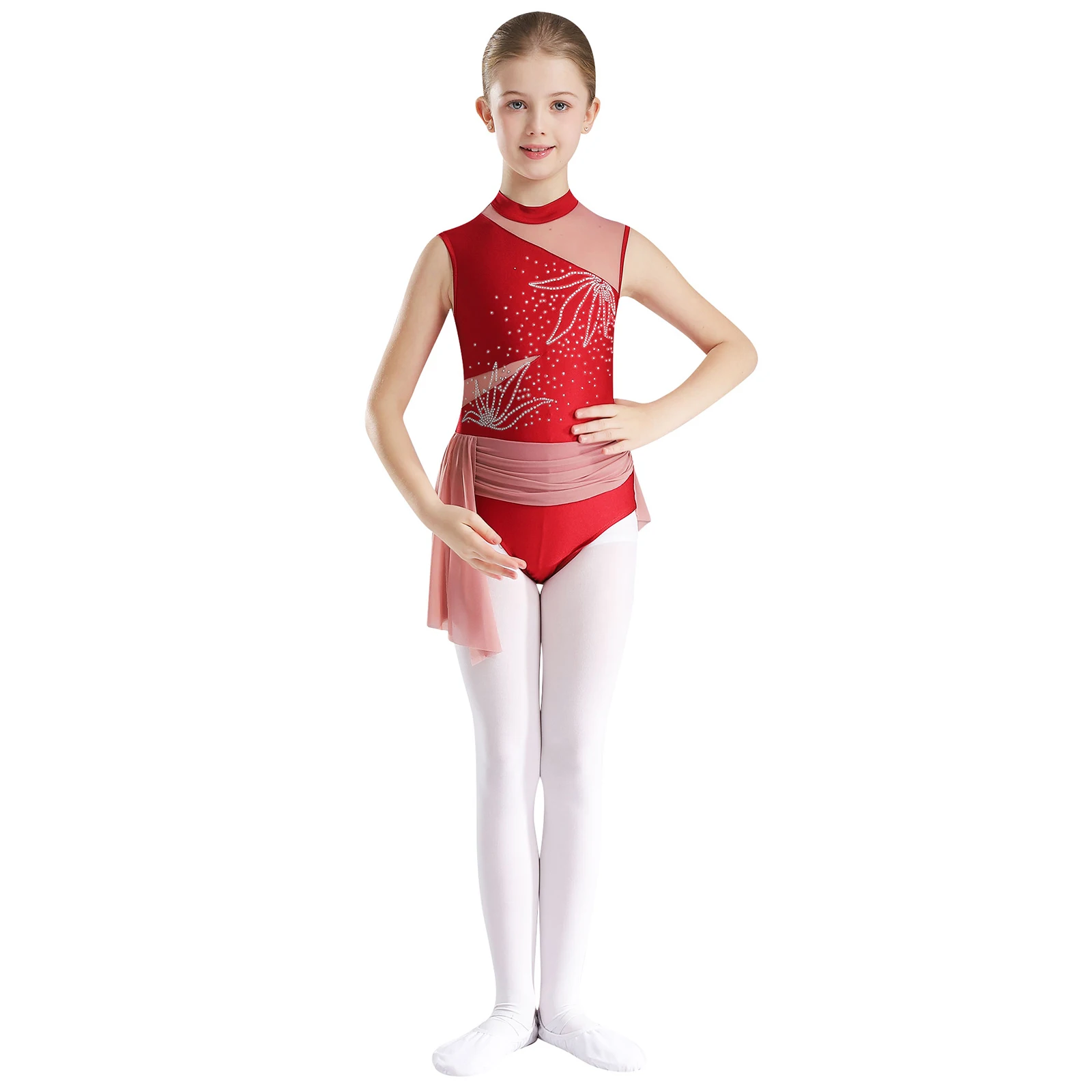 Girls Figure Skating Bodysuit Dancewear Ballet Dance Gymnastics Leotard Tutu Sleeveless Jumpsuit Latin Tango Performance Costume