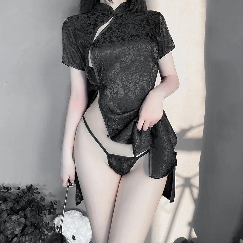 Name | Chinese Cheongsam Sexy Lingerie Women Costumes Cosplay Role Play Charming Side Open Design Qipao Dress Outfits |