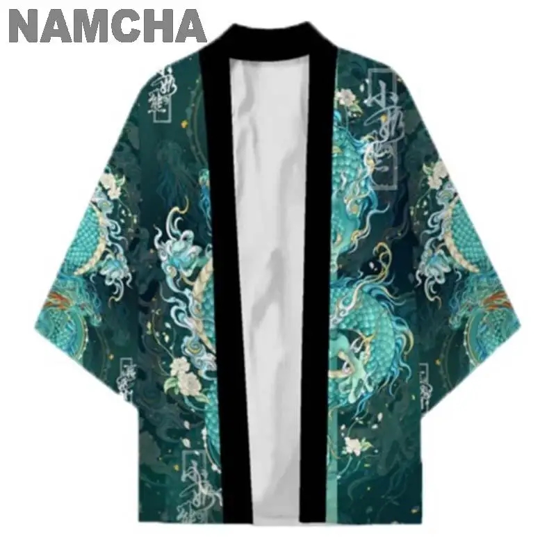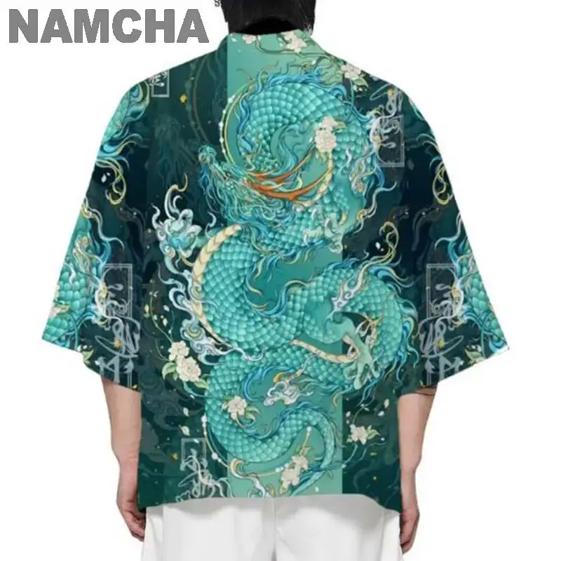 Anime Chinese Style Dragon Pattern Japanese Kimono Asian Traditional Costume Cardigan Top Jacket Summer Men's Haori Samurai Coat