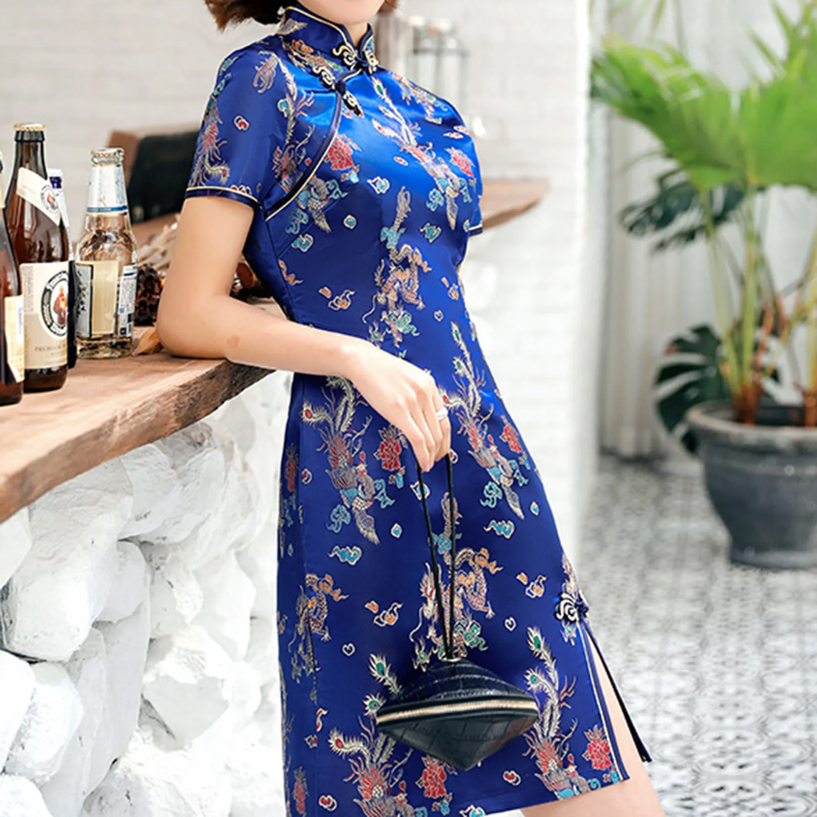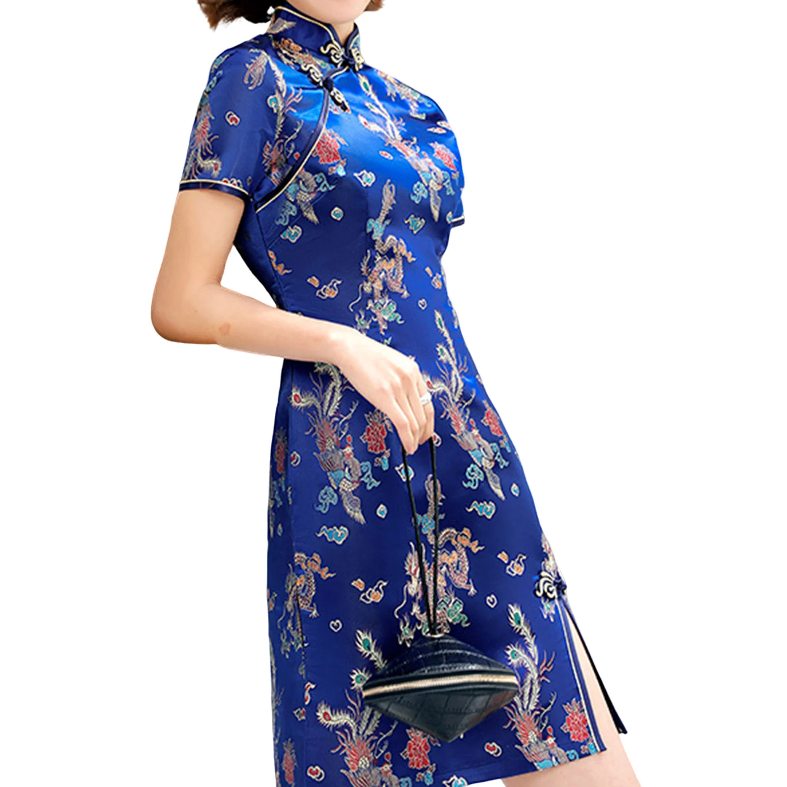 Women's Cheongsam Mini Dress Cheongsam Split Mini Dress with Colorful Dragon Patterns Chinese Style Formal Dresses