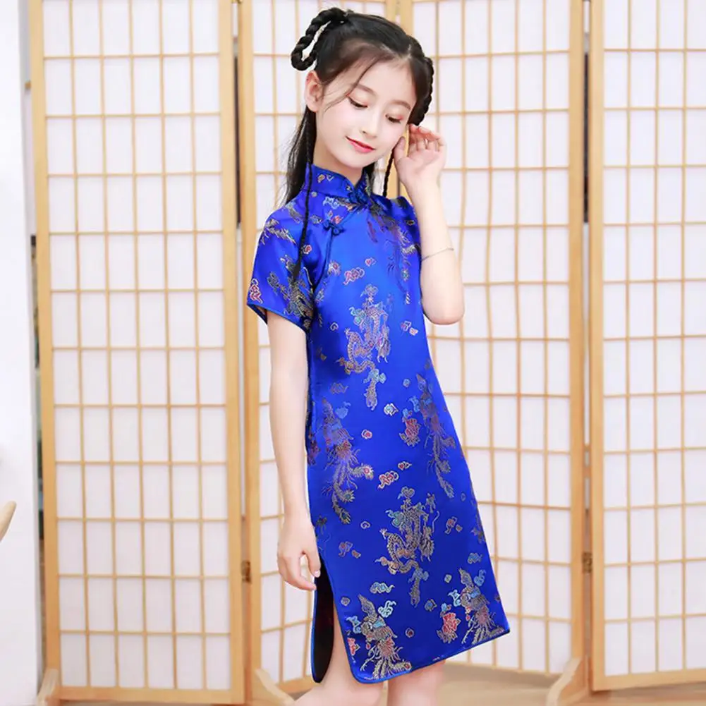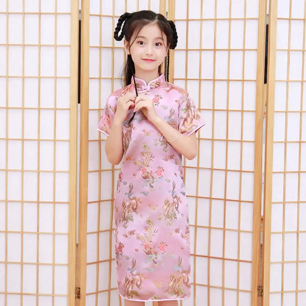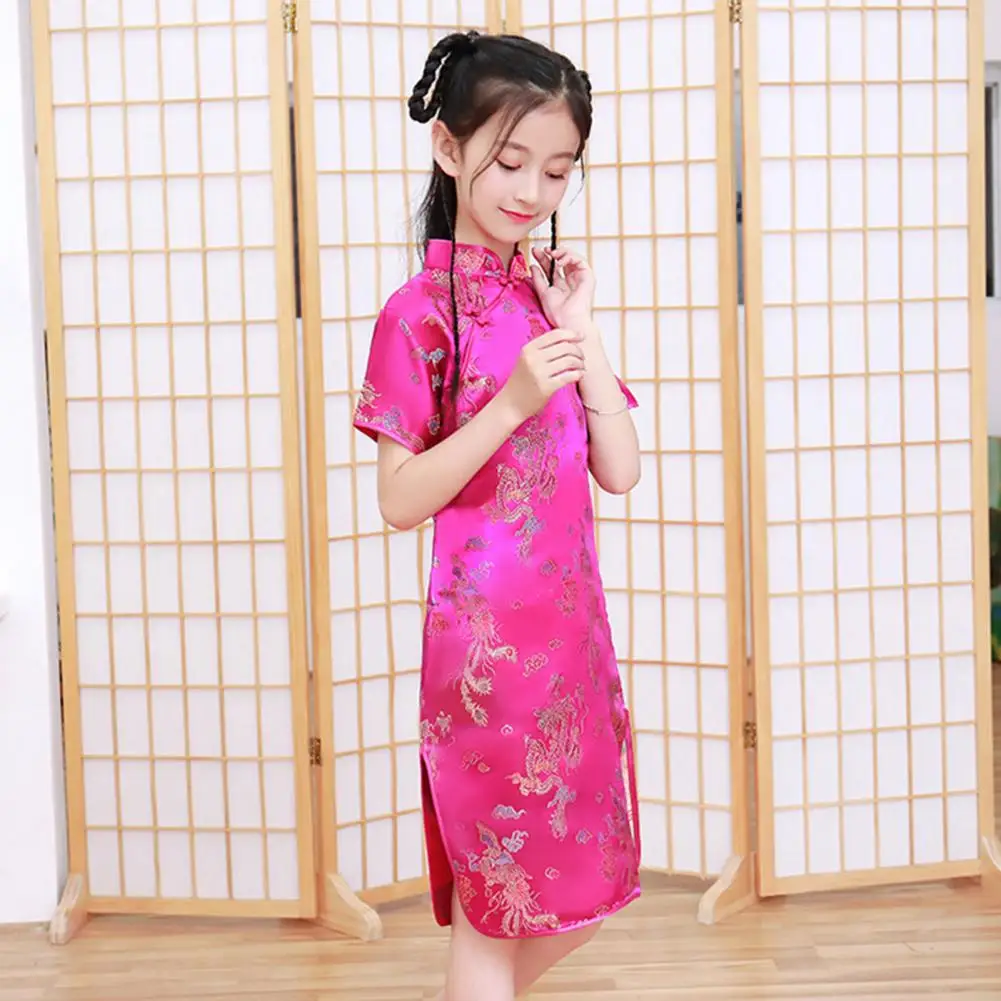 Name | Kids Girls Cheongsams Hanfu Tight Phoenix Print Dress Summer Toddler Dresses Chinese Traditional Costumes Princess Satin Dress |
