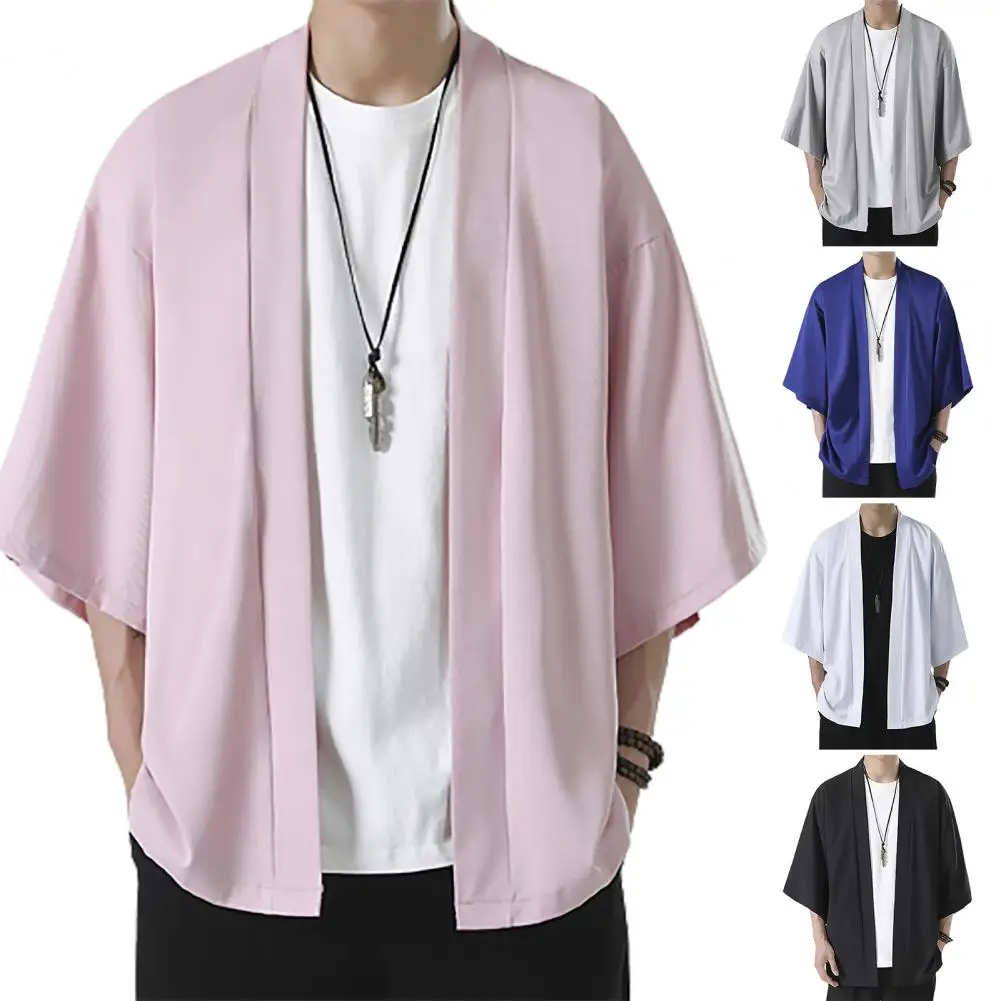 Men's Kimono Cardigan Japanese Jackets Casual Cotton Open Front Lightweight Linen Yukata