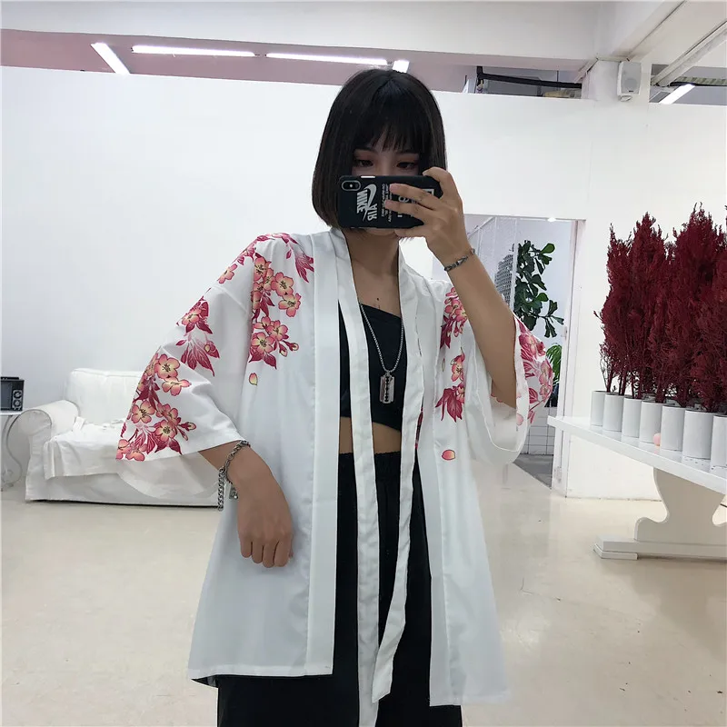 Women Harajuku Cardigan Japanese Kimono Summer Digital Printed Loose Shirt Tops Casual Woman Man Kimonos Coat