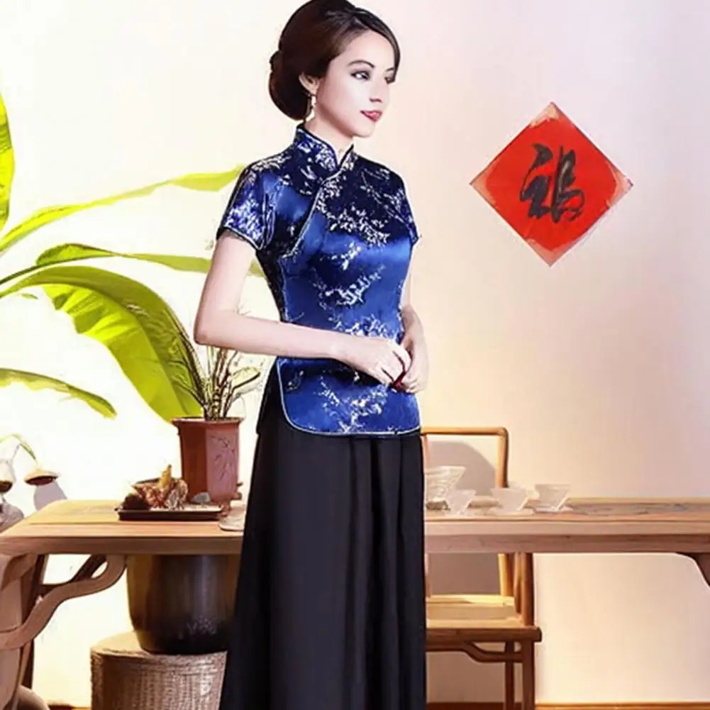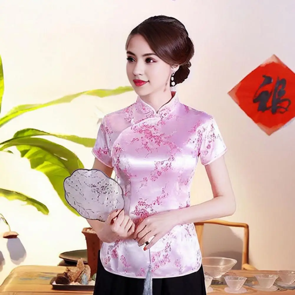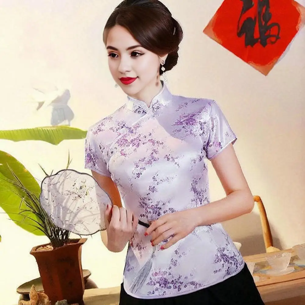 Name | Women Qipao Tops Floral Print Traditional Chinese Stand Collar Short Sleeve Blouse New Year Cheongsam Tops Women Clothes |