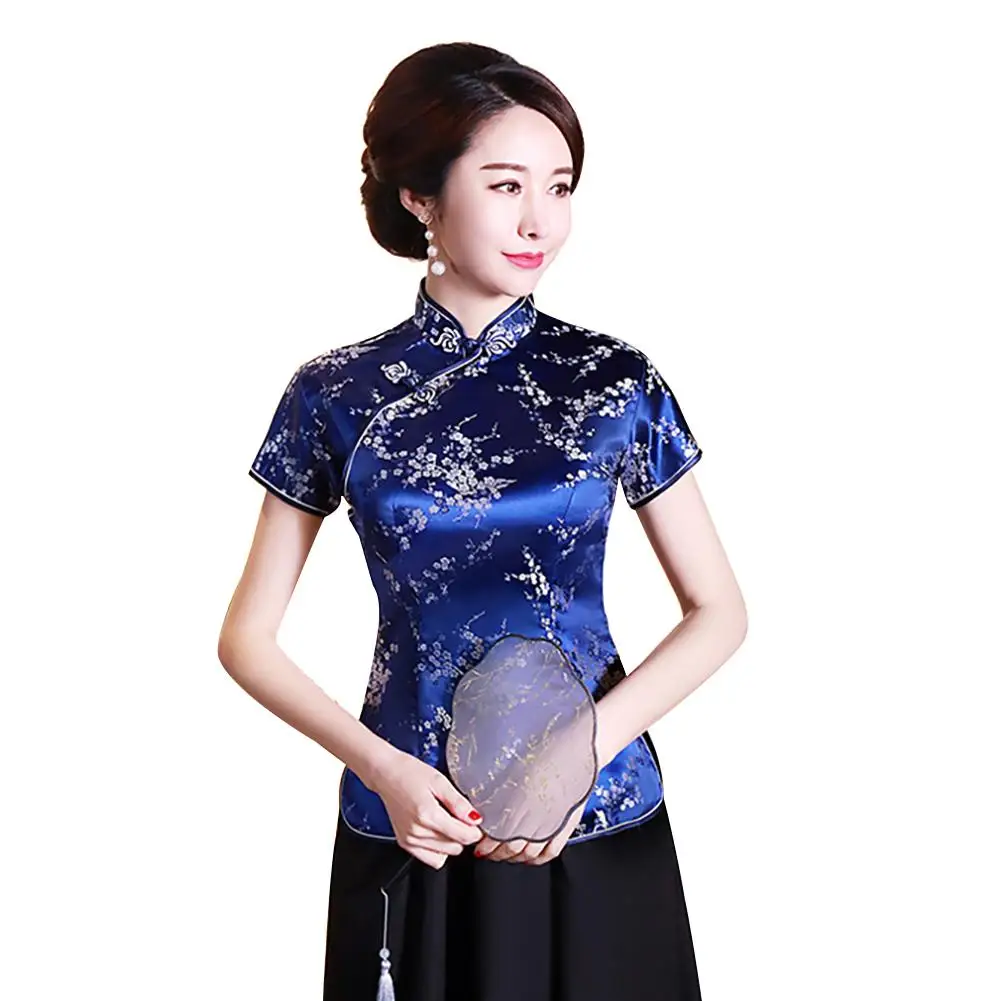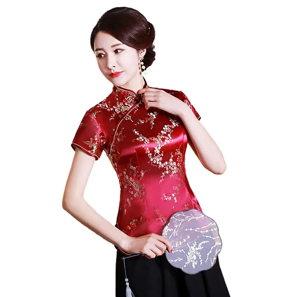Name | Elegant Women Chinese Plum Blossom Short Sleeve Stand Collar Buttons Slim Blouse Shirt Lady Traditional Clothing |