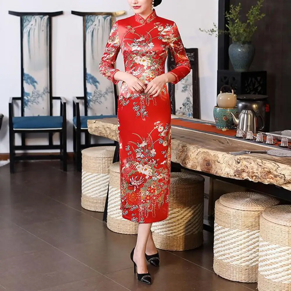 Name | Semi-stand-up Collar Cheongsam Women Retro Dress Elegant Chinese National Style Floral Print |