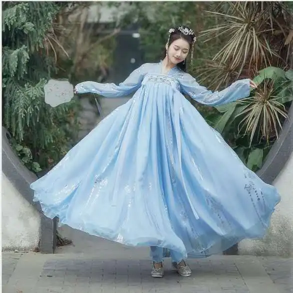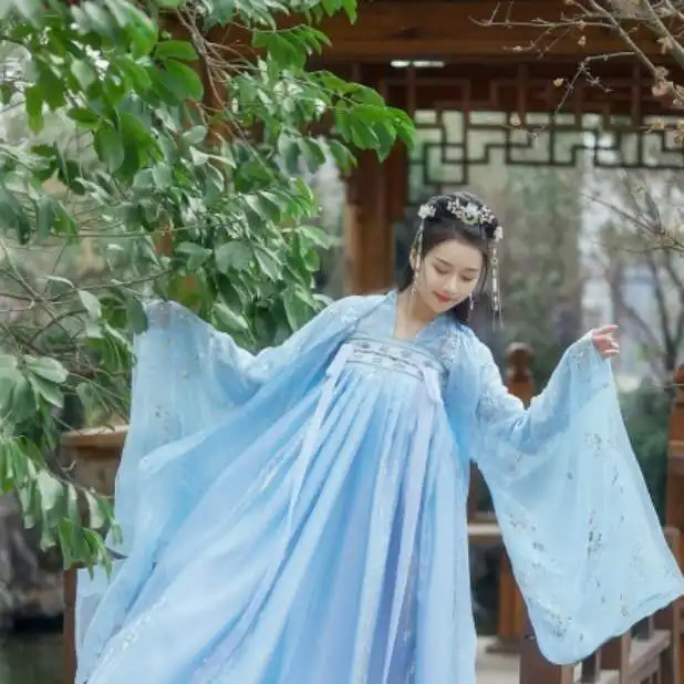 Name | Chinese Ancient Traditional Performance Outfits Fantasia Couples Cosplay Costume Fancy Plus Size White Blue Chinese Dress Women |