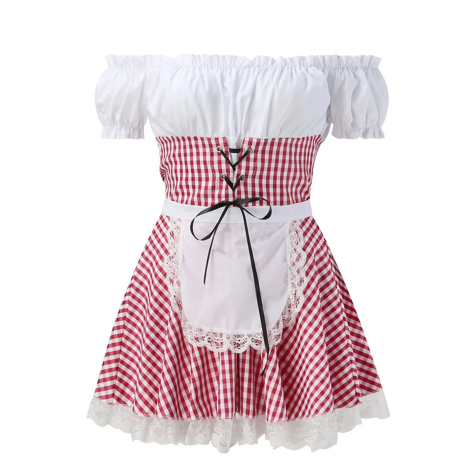 Name | Bavarian Women's Maid Dresses Oktoberfest Off Shoulder Lace Apron Dirndl Dress Women Vintage Fancy Party Cosplay Costume Dress |