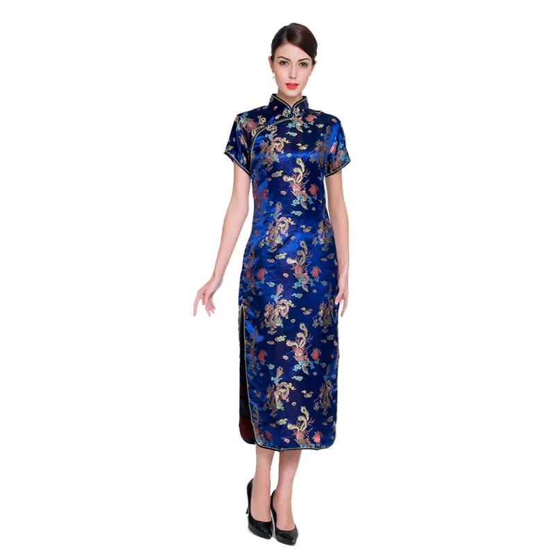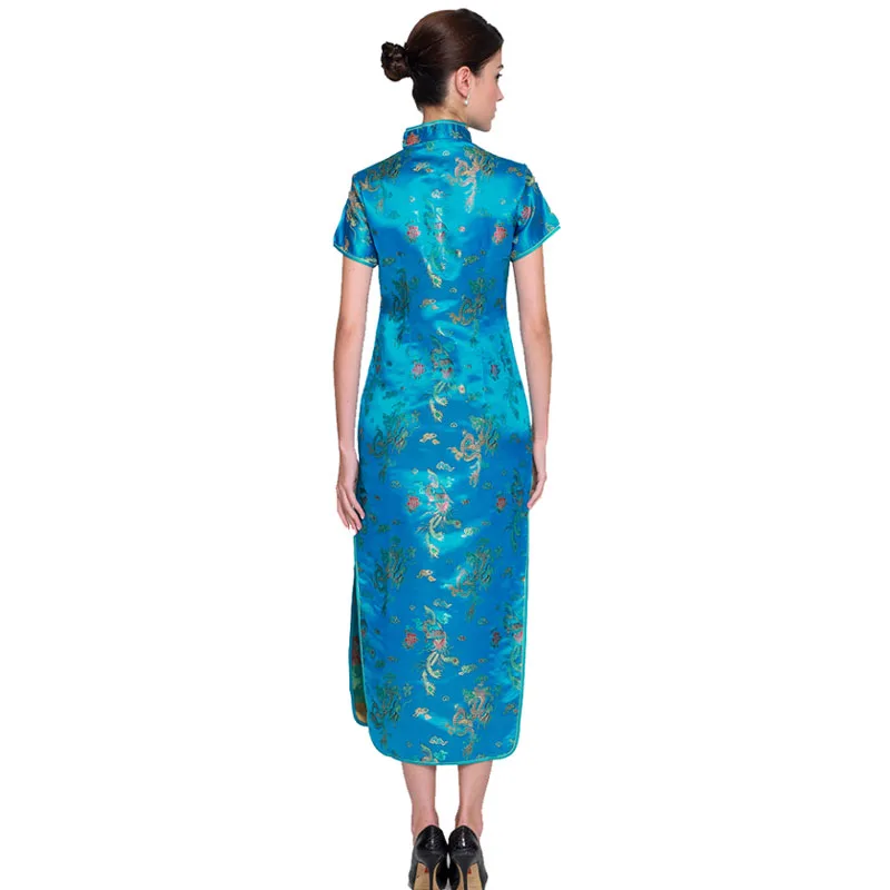 Name | Vintage Blue Chinese Ladies Traditional Cheongsam Prom Gown Dress Women Long Qipao Evening Party Costume Oversize 4XL 5XL 6XL |