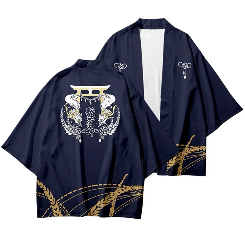 Anime Japan Inari No Kami 3d Kimono Shirt Nine Tailed Fox Print Men Women Seven Point Sleeve Tops Cardigan Jacket Streetwear 4XL