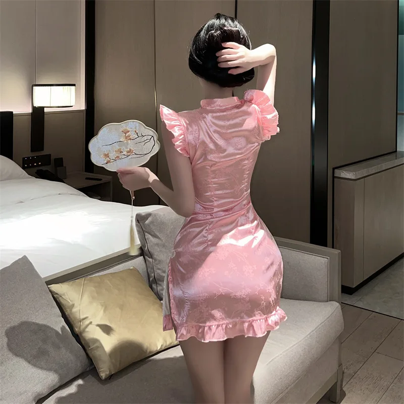 Name | Women Sweet Chinese Cheongsam Sexy Lingerie Babydoll Dress High Split Erotic Open Chest No Take Off Uniform Alluring Cheongsam |