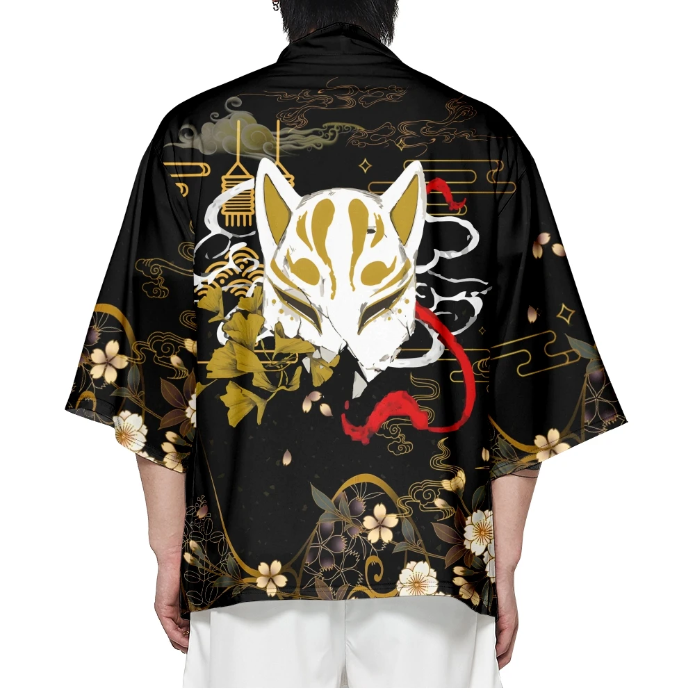 Fox Mask Print Fashion Beach Shirts Traditional Japanese Haori Cardigan Tops Plus Size 4XL 5XL 6XL