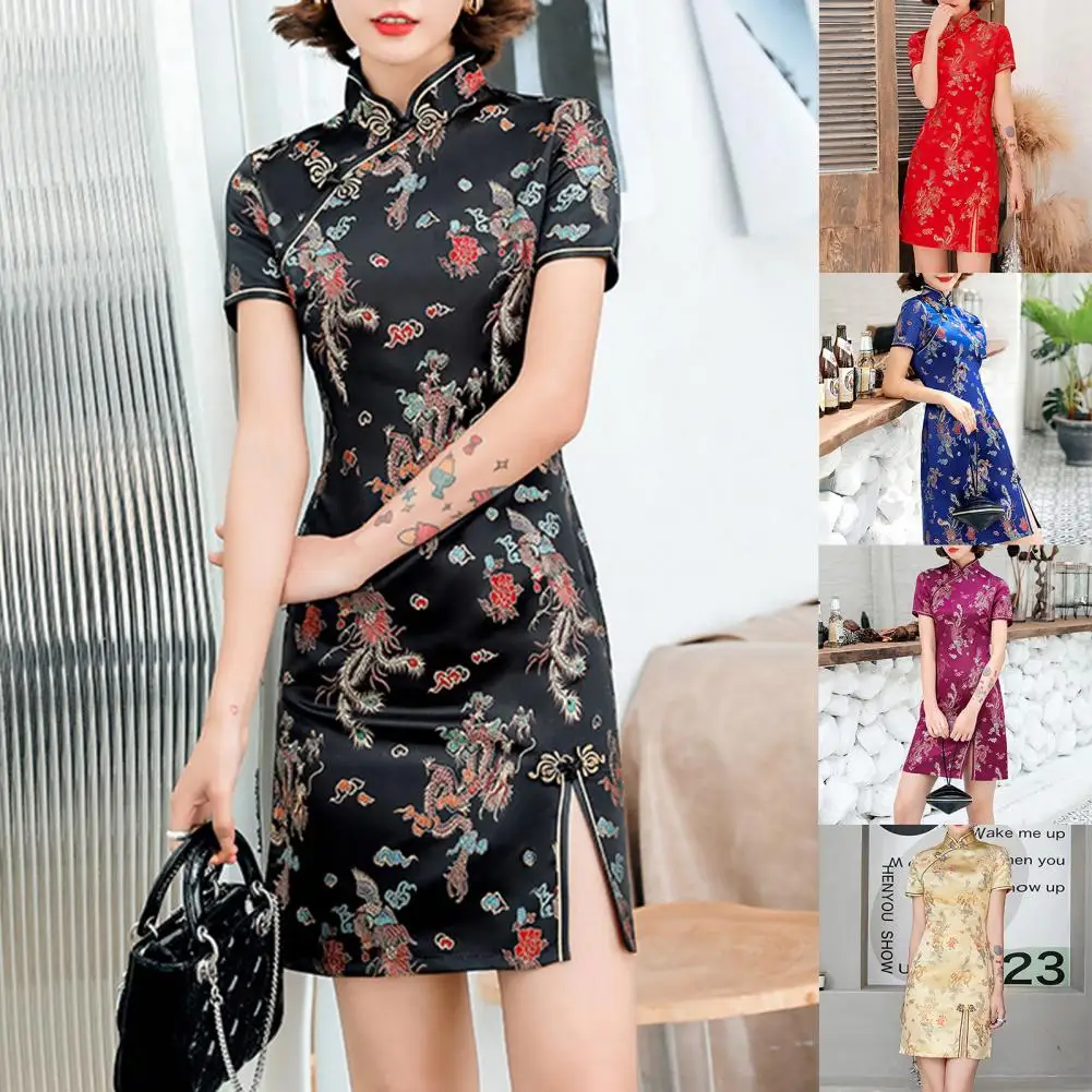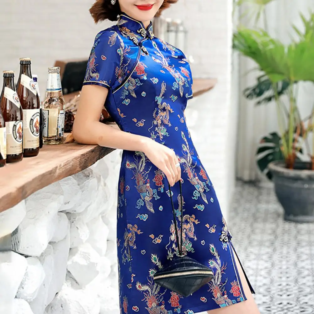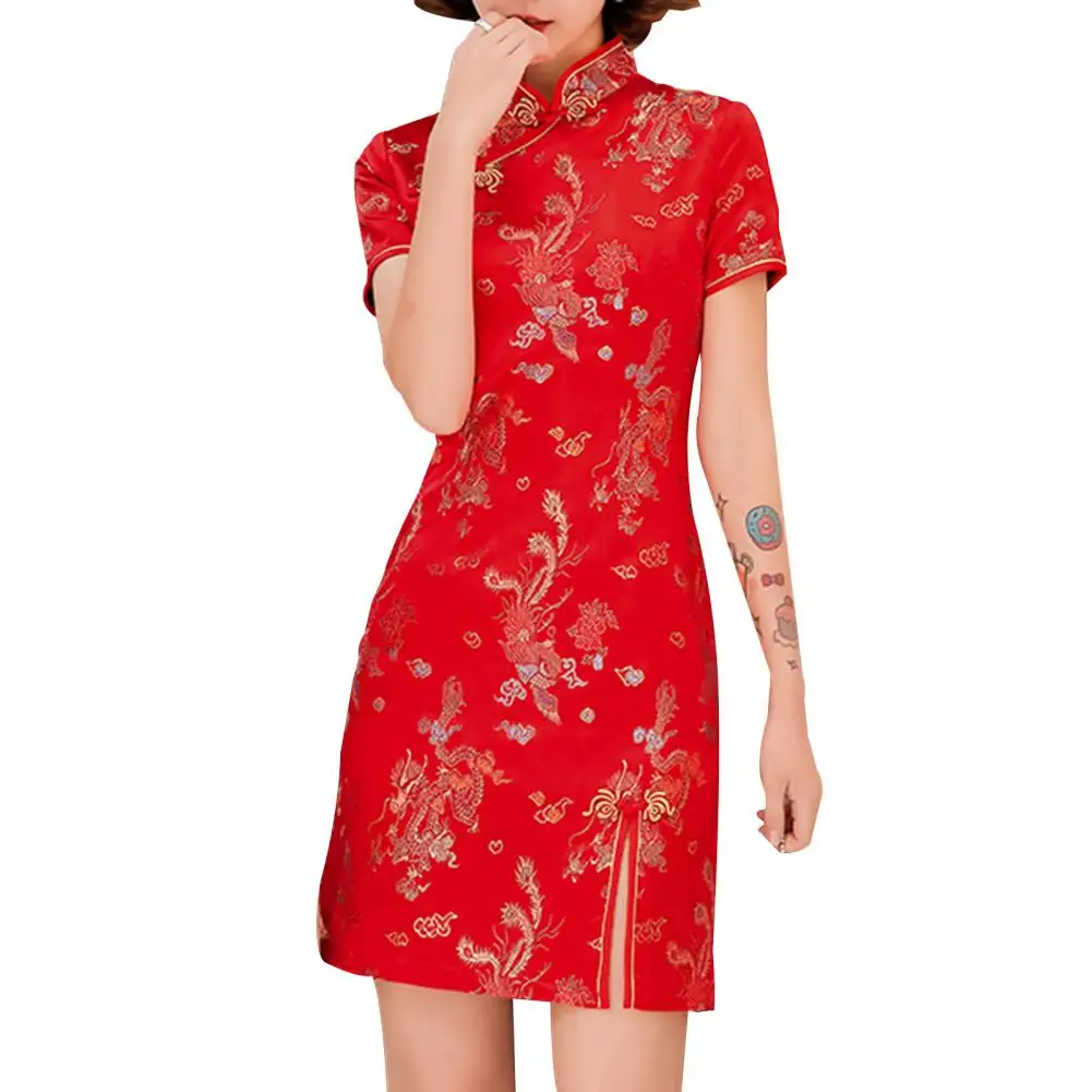 Name | Beautiful Above Knee Woman Elegant Traditional Embroidery Qipao Dress Disc Buckles Skin-touch Wedding Qipao for New Year |