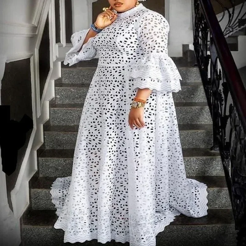 African Dresses For Women Hollow Out 2024 New Elegant Muslim Fashion Abayas Dashiki Robe Kaftan Long Maxi Dress One Piece