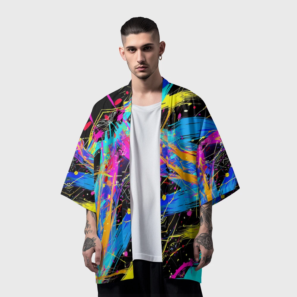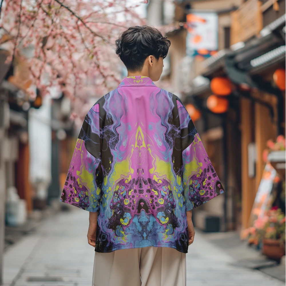 Summer Samurai Kimono Cosplay Stylish Tie Dye Haori Streetwear Kimono Japanese Fashion Men Chic Cardigan Robe Hot Sale