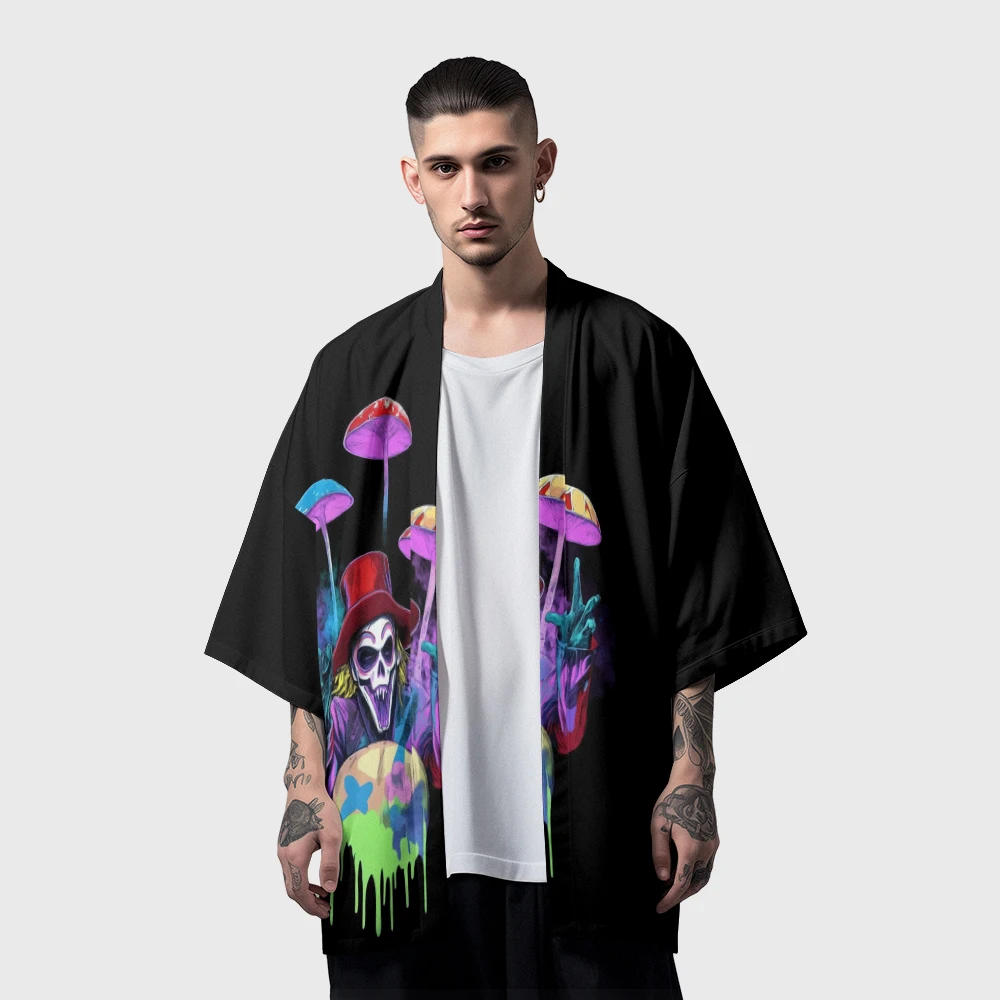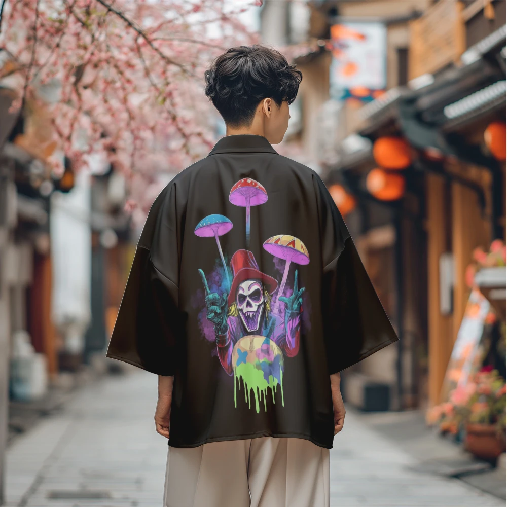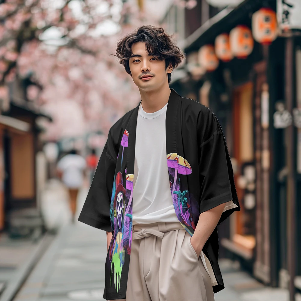 Summer Samurai Kimono Men Cosplay Stylish Psychedelic Haori Streetwear Kimono Japanese Fashion Yukata Cardigan Vintage Robe