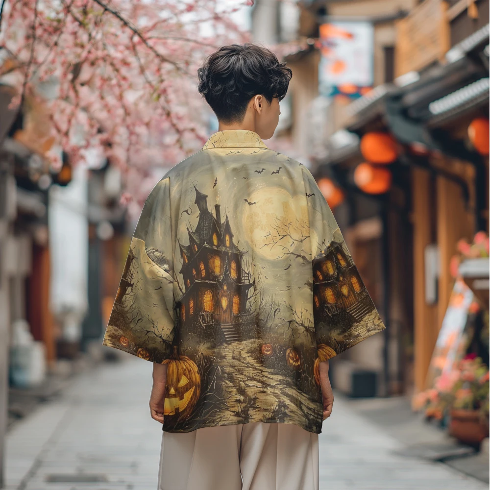 Summer Kimono Men Fashion Shirt Women Beach Cardigan Halloween Kimono Cosplay Yukata Haori Japanese Clothes Holiday Bathrobes
