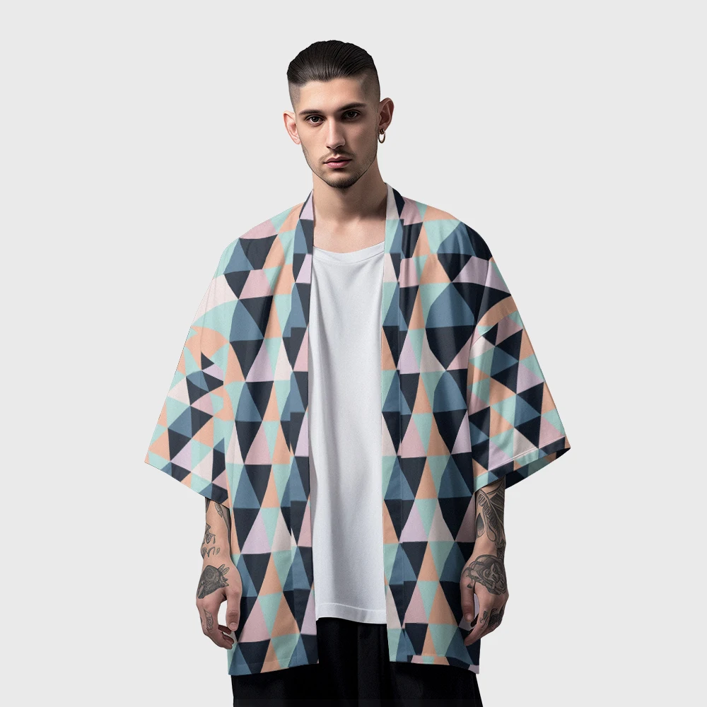 Summer Samurai Kimono Men Cosplay Stylish Haori Streetwear Kimono Japanese Fashion Yukata Popular Cardigan Geometric Robe