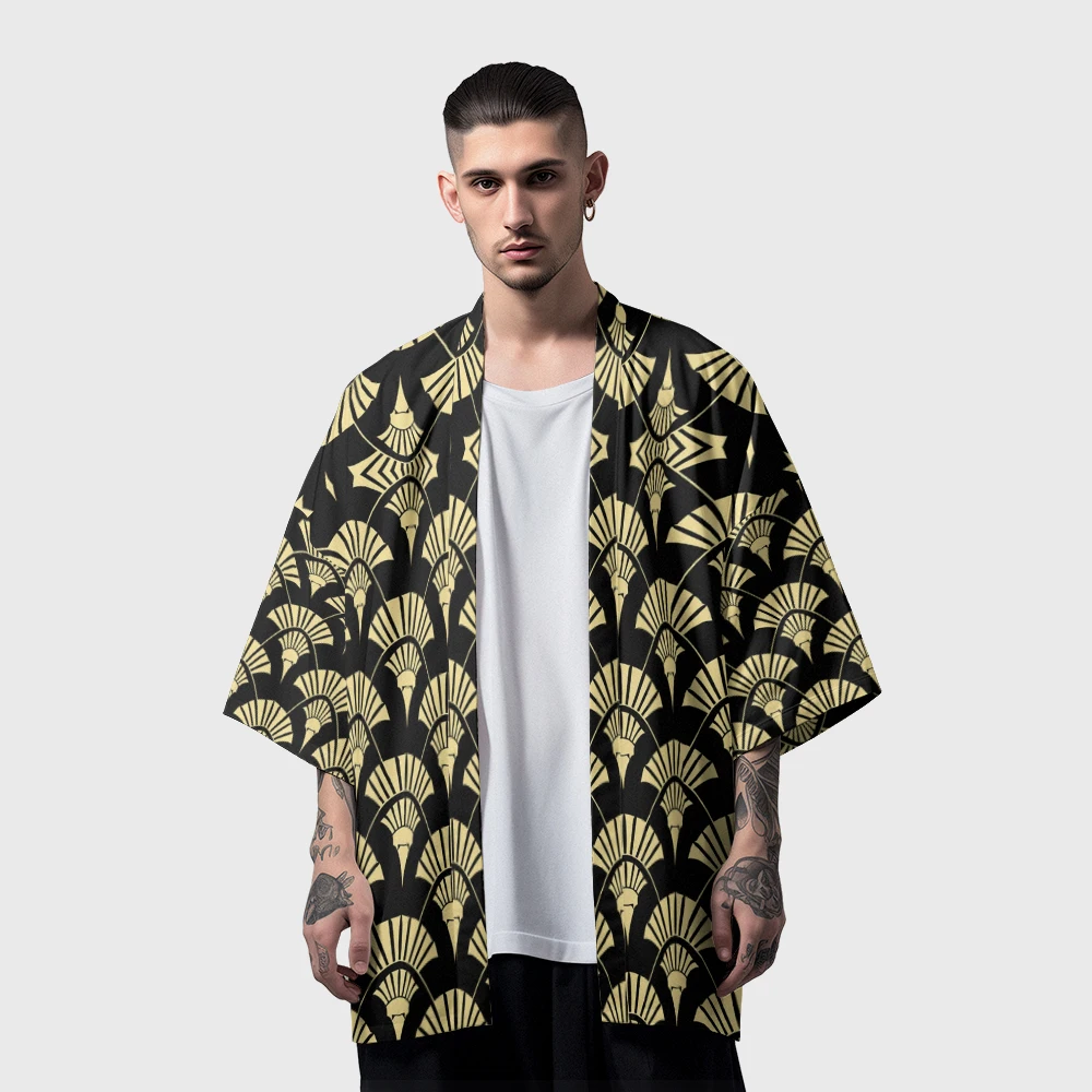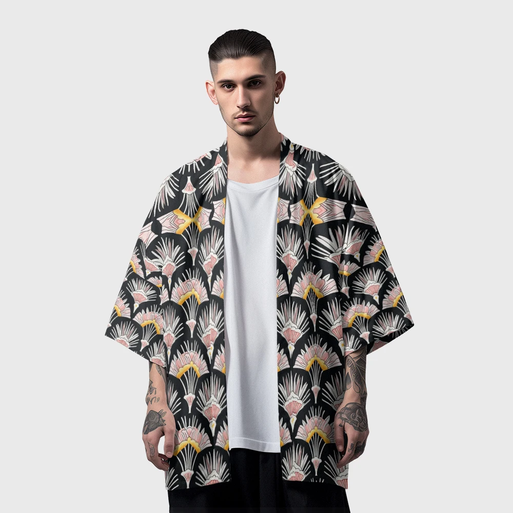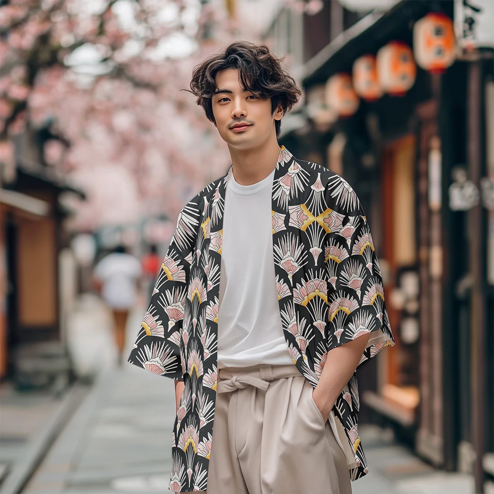 Summer Samurai Kimono Cosplay Stylish Vintage Haori Streetwear Kimono Japanese Fashion Yukata Geometric Cardigan Men Robe