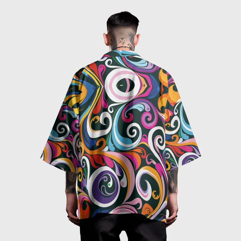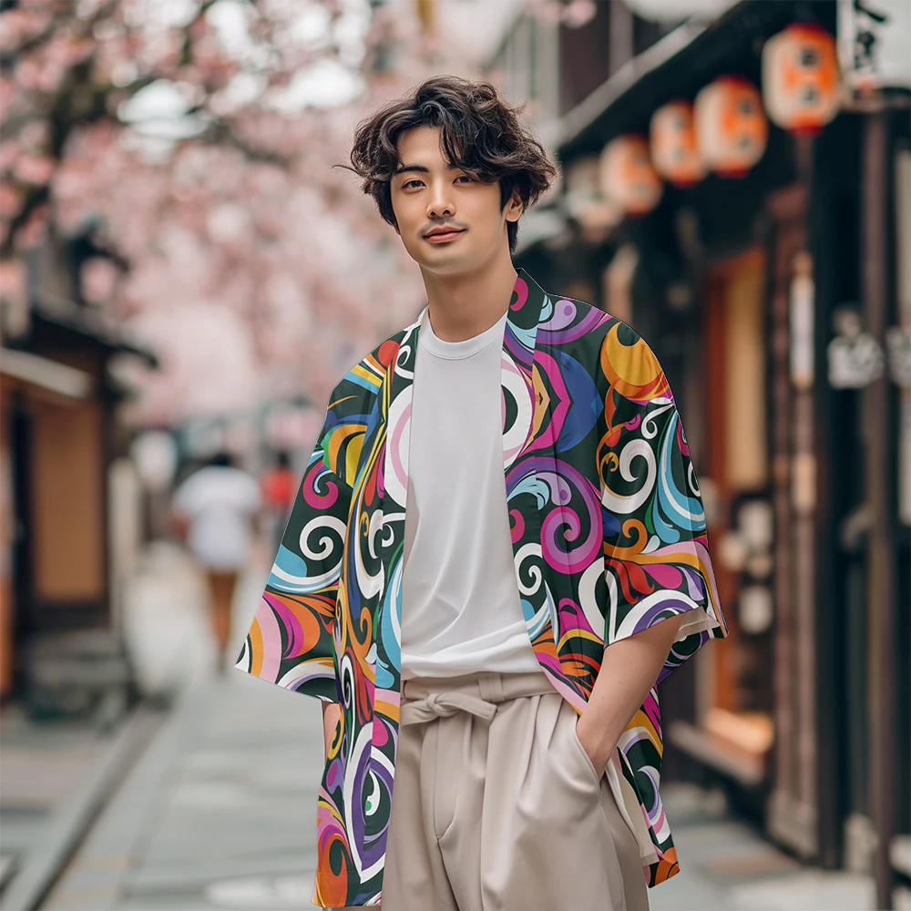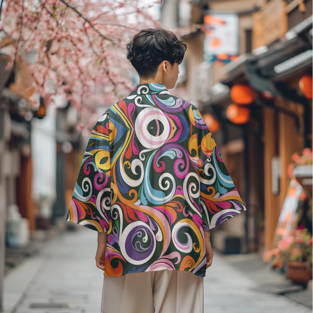 Summer Samurai Kimono Men Cosplay Stylish Psychedelic Haori Streetwear Kimono Japanese Fashion Yukata Cardigan Vintage Robe