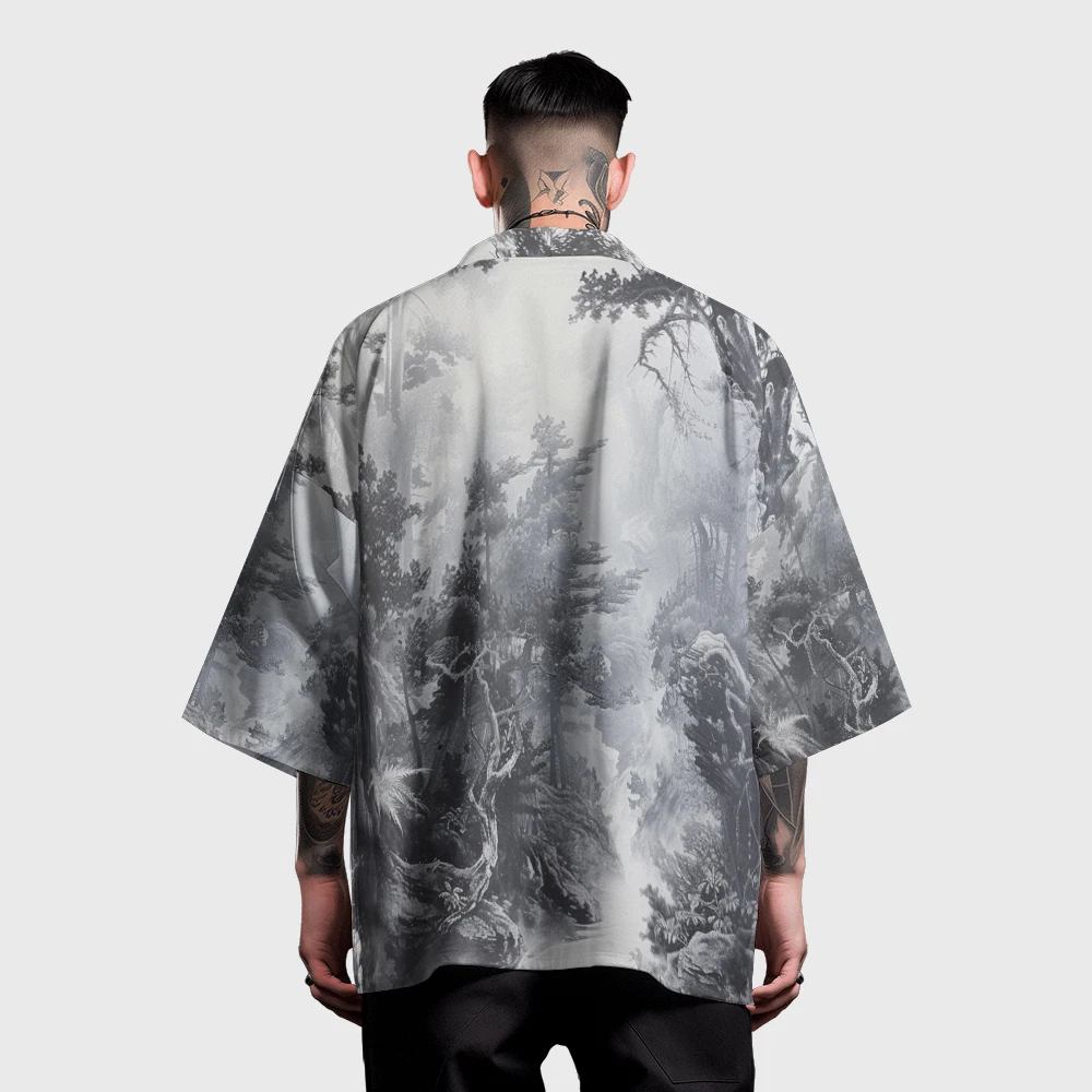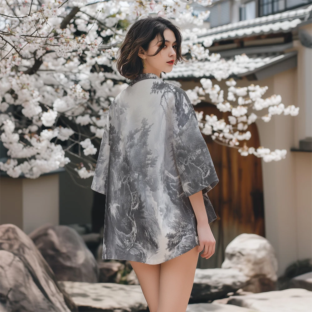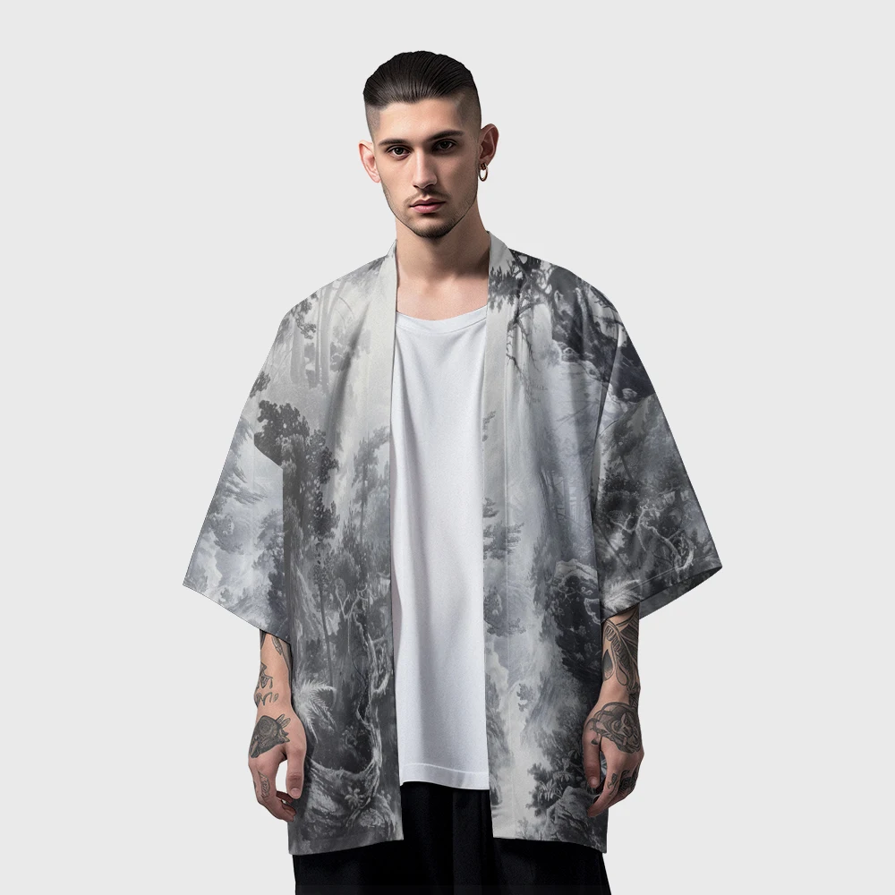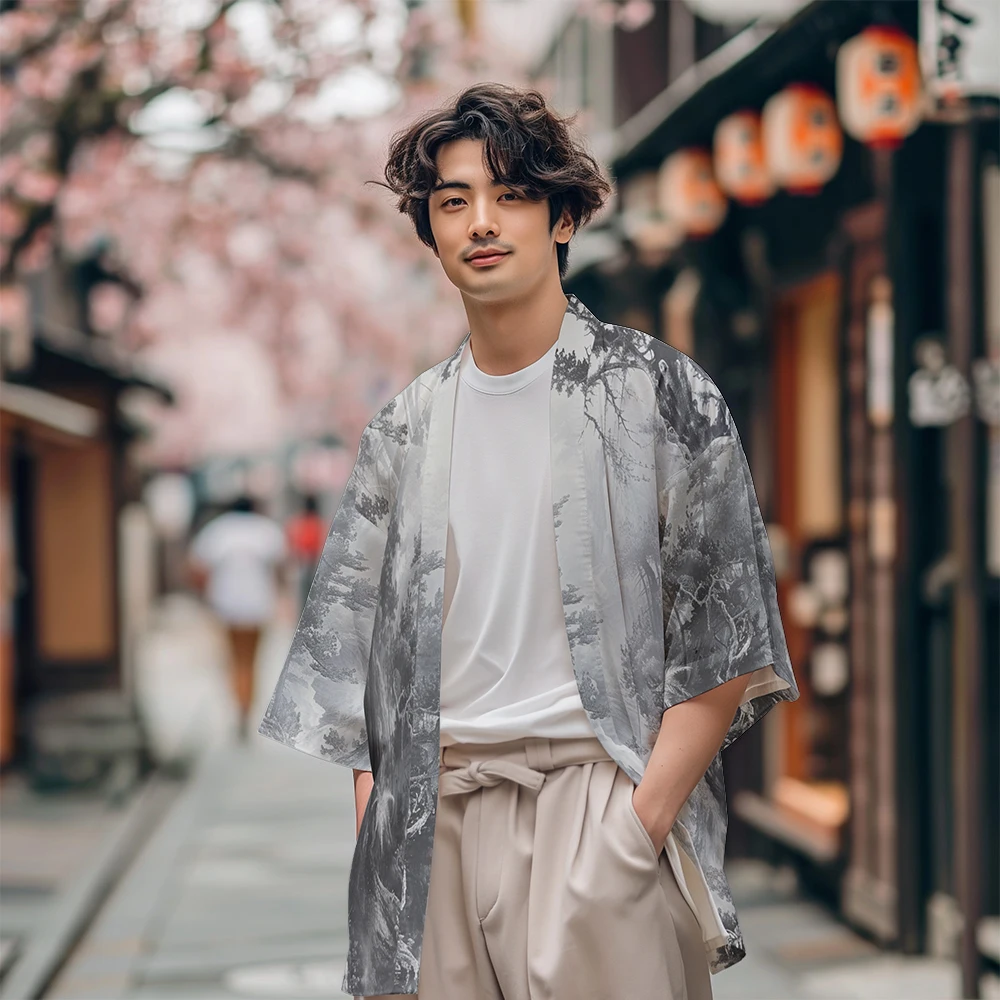 Summer Kimono Men Cosplay Stylish Haori Streetwear Kimono Japanese Fashion Vintage Yukata Landscape Print Cardigan Holiday Robe