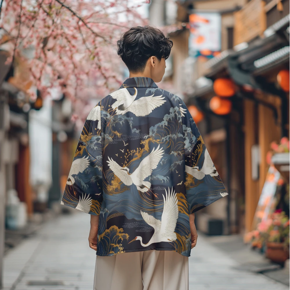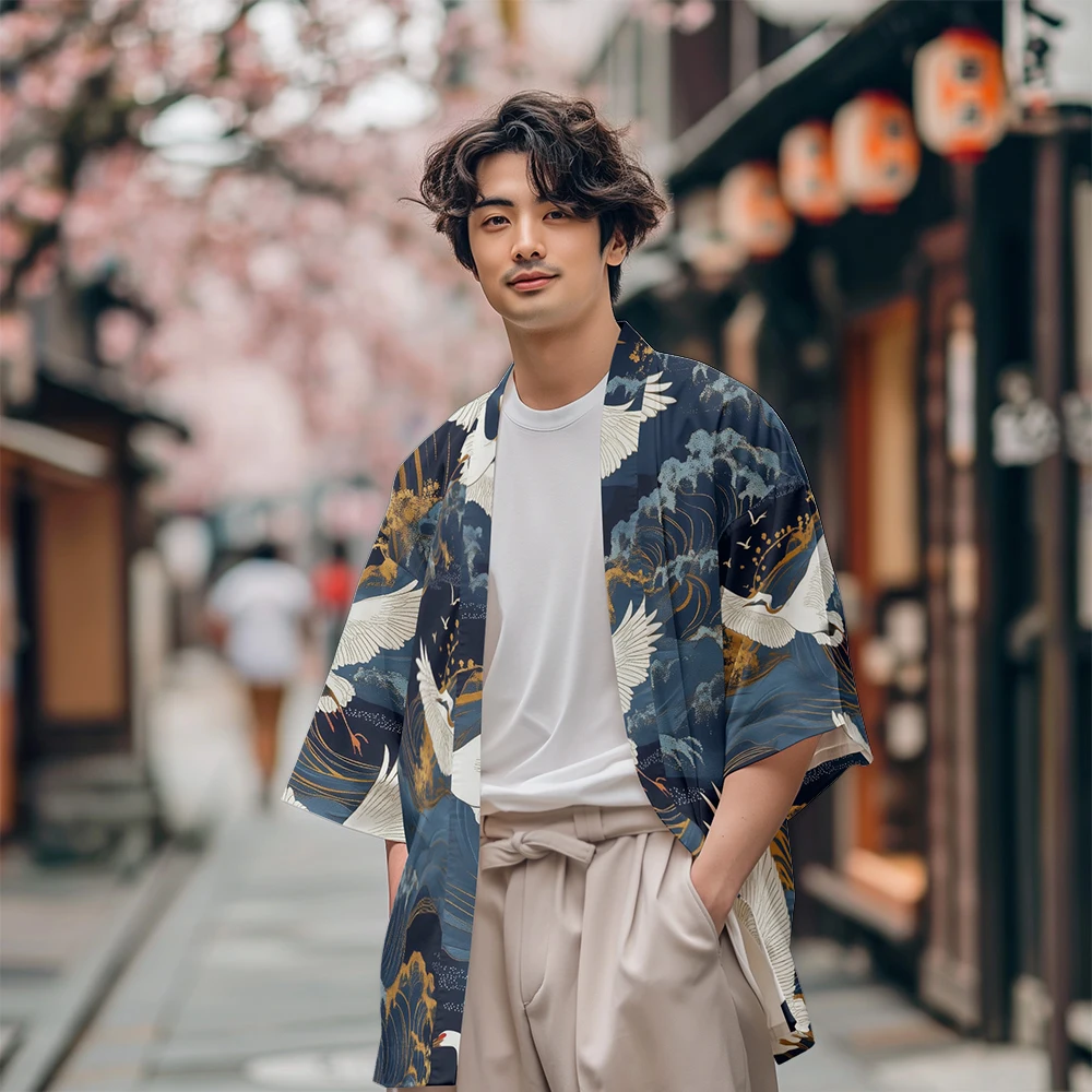 Summer Samurai Kimono Men Cosplay Vintage Haori Streetwear Kimono Japanese Fashion Popular Cardigan Holiday Yukata Robe