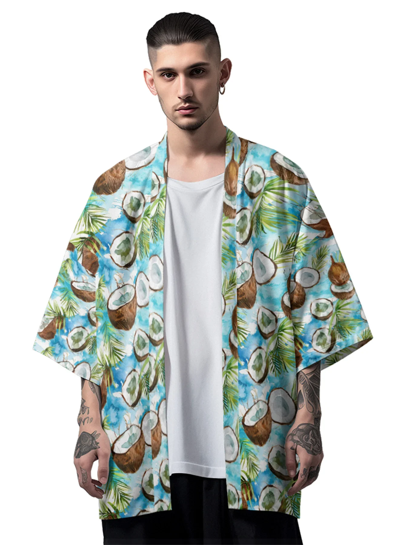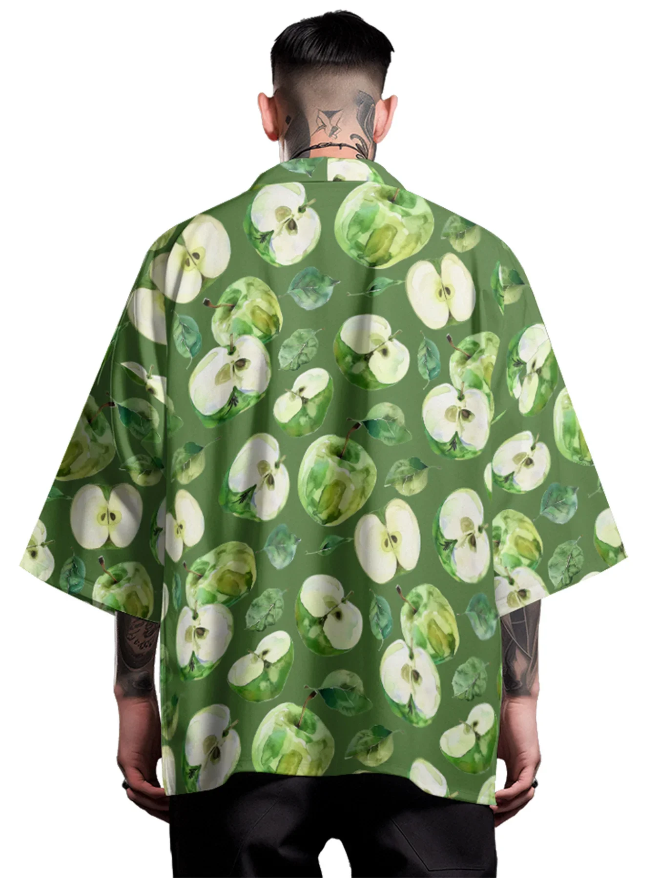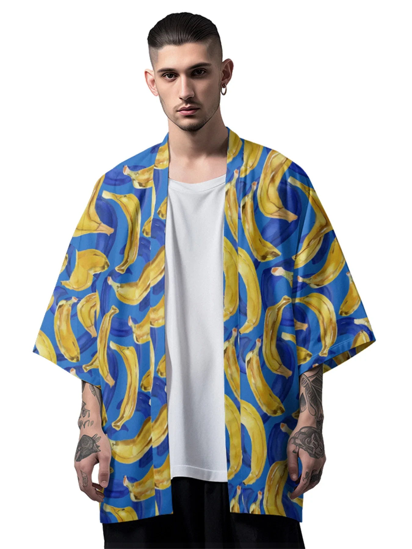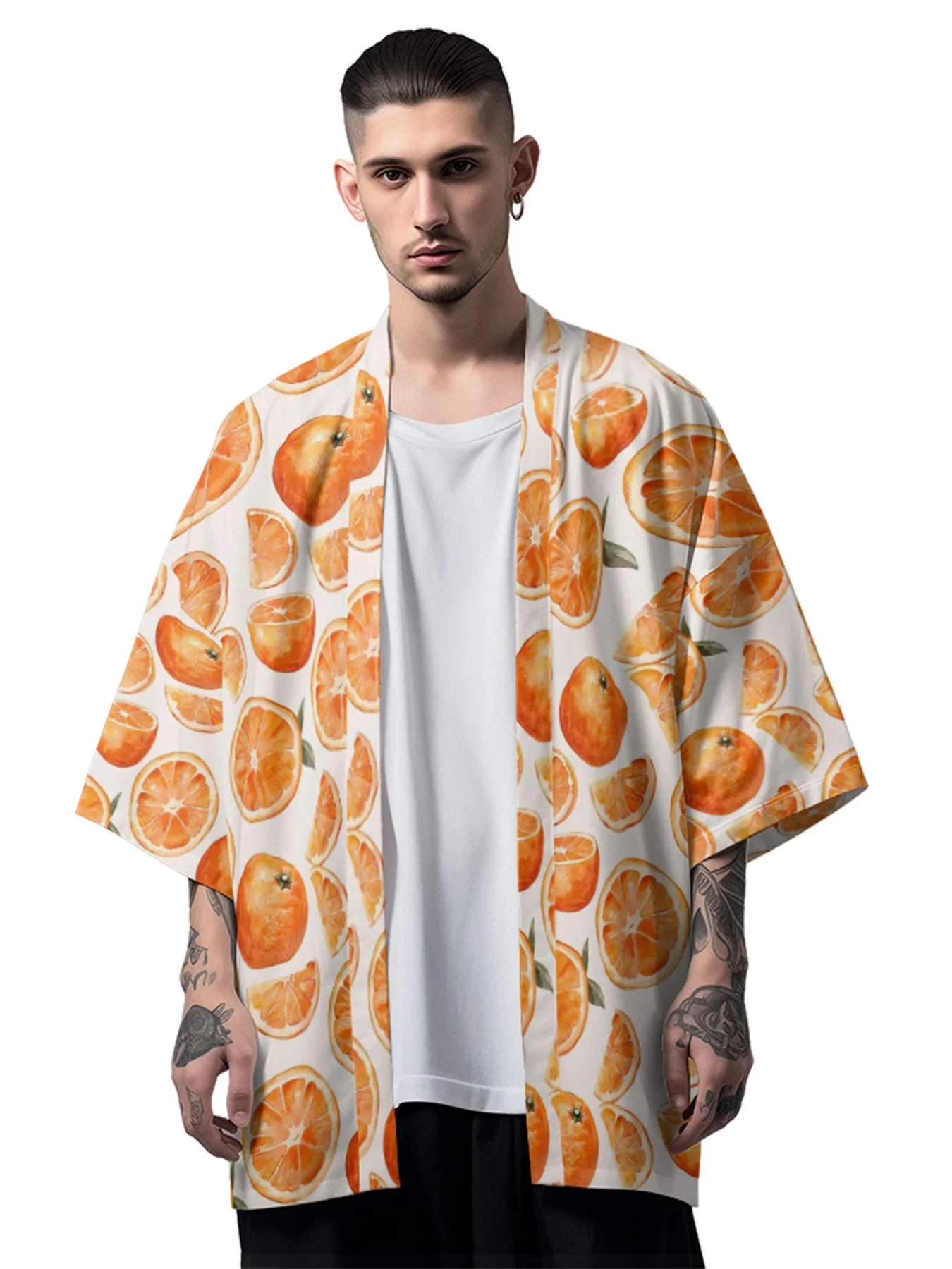 Summer Samurai Kimono Fresh Fruit Print Haori Traditional Kimono Japanese Fashion Cosplay Yukata Men Shirt Robe Women Cardigan