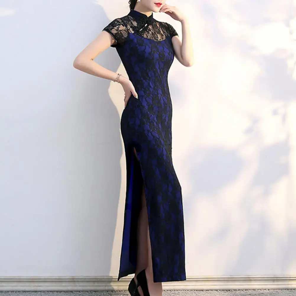 Ladies Cheongsam Dress Chinese Women Traditional Dress Elegant Vintage Chinese Lace Maxi Dress with Stand Collar for Special
