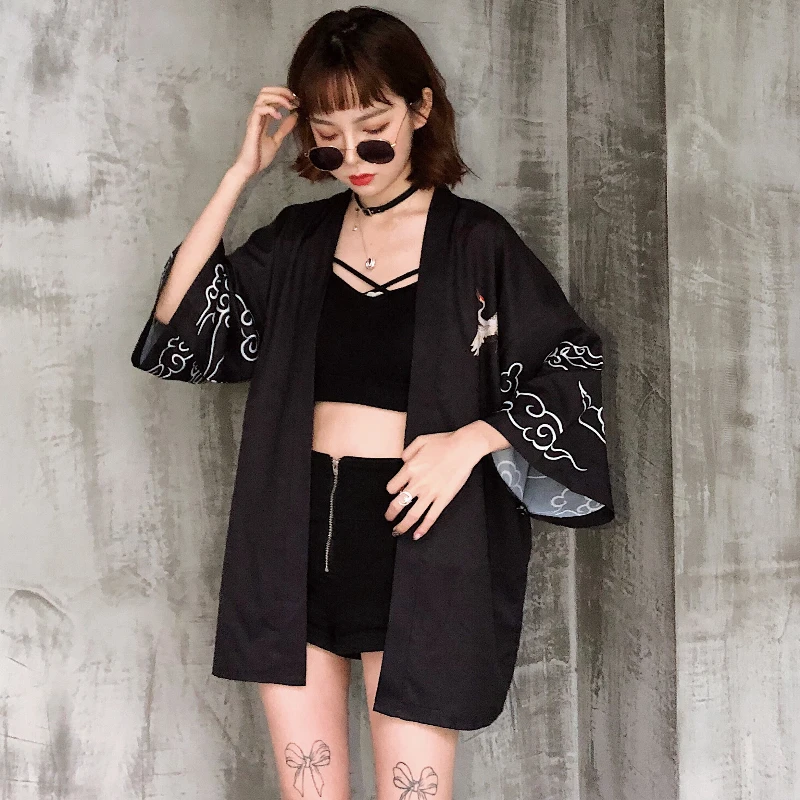 Man Japanese Style Kimono Cardigan Harajukuc Chinese Hanfu Clothing Woman Couple Sun-Proof Shirt Haori Kawaii Clothing Blouse