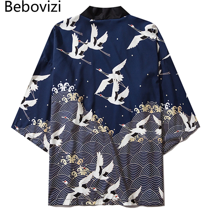 Harajuku Men Women Streetwear Summer Clothing Traditional Chinese Style Crane Print Loose Beach Yukata Japanese Kimono Jacket