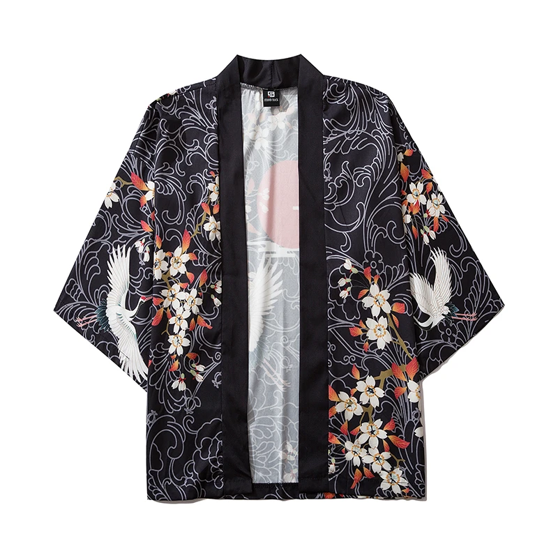 Casual Asian Clothes Japanese Style Crane Red Sun Kimono Men Women Cardigan Traditional Japanese Clothing Haori Yukata Women