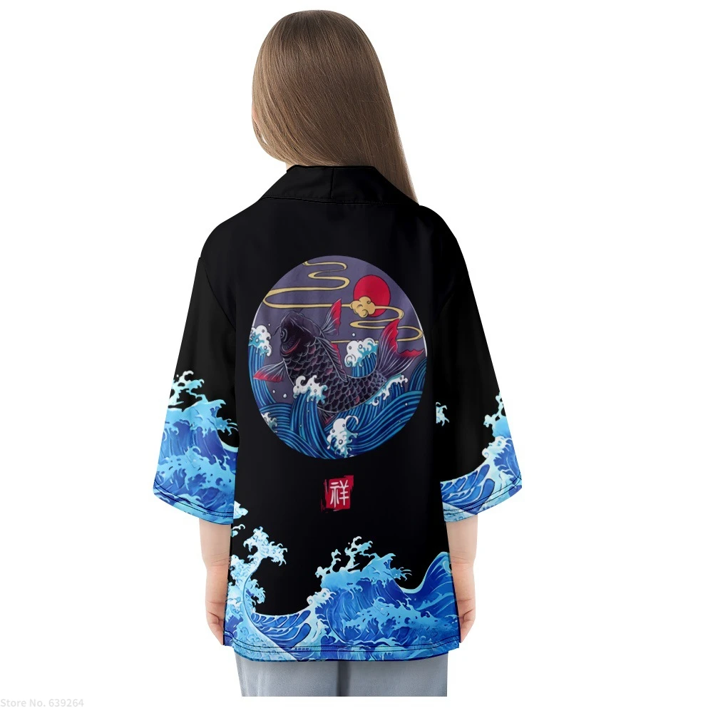 6XL 5XL 4XL Oversized Wave Traditional Kimono Fashion Men Women Cardigan Samurai Black Tops Summer Beach Yukata Japanese Haori