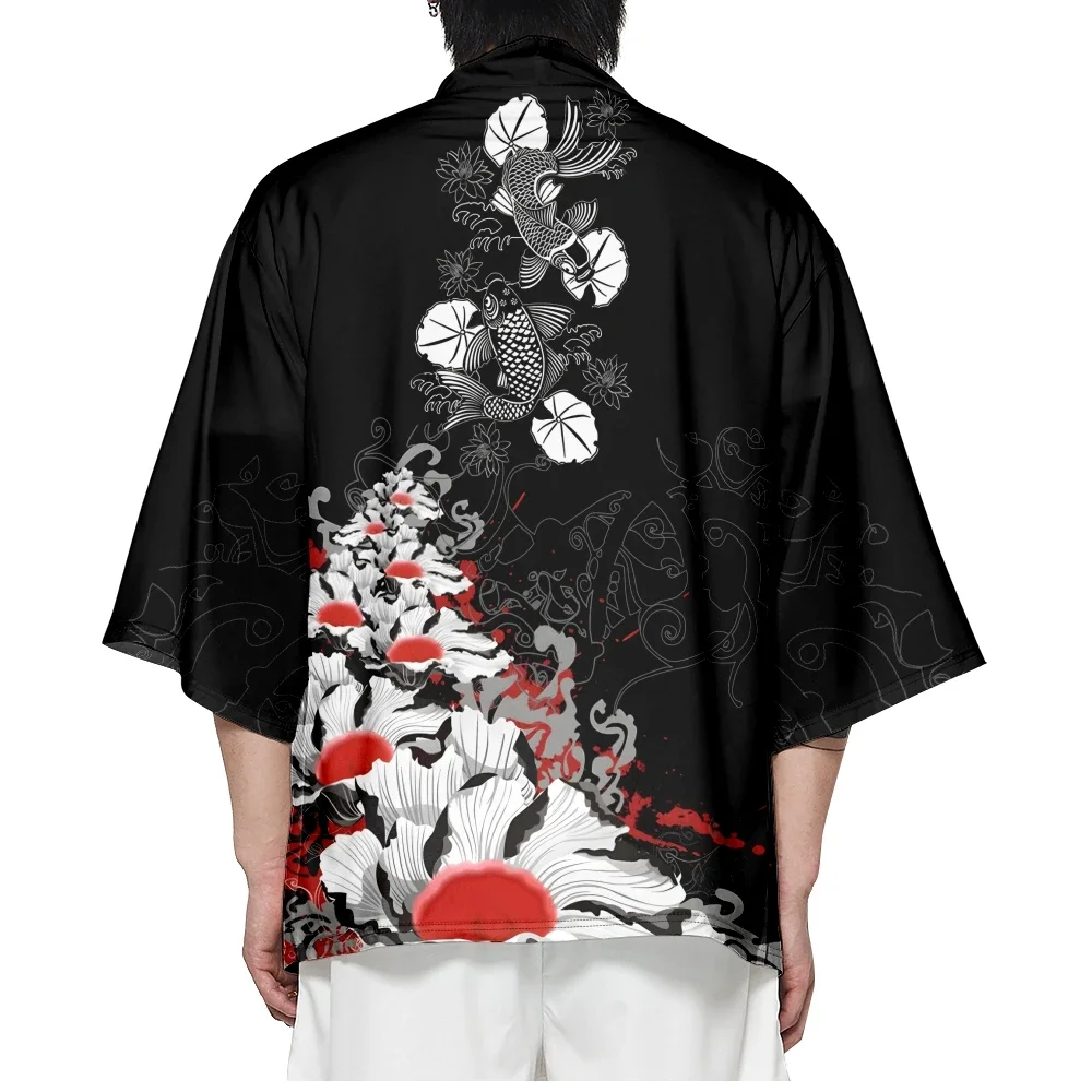 2023 Personality Japanese Kimono Cosplay Shirt Men Beach Haori Traditional Women Flowers Print Cardigan Yukata