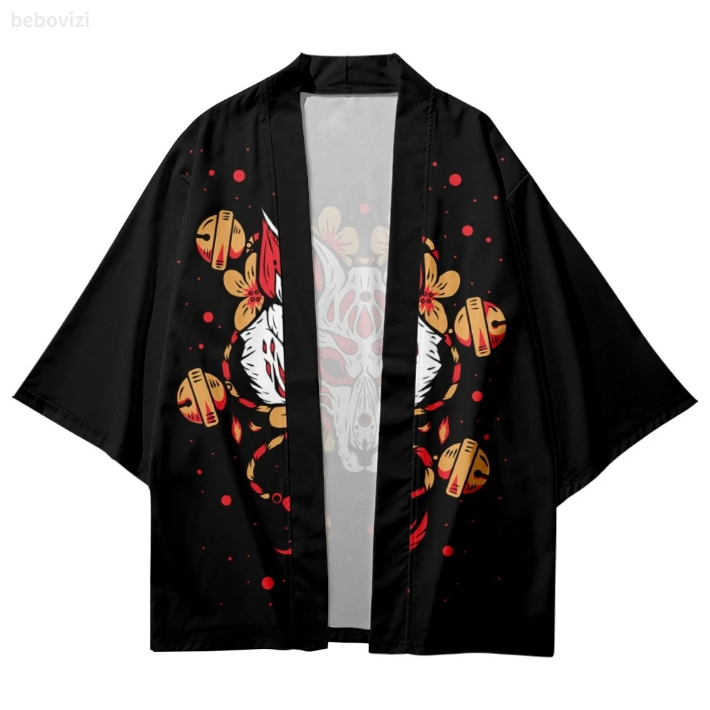 Plus Size Fox Streetwear Summer Clothing Anime Print Traditional Kimono Japanese Men Women Yukata Cardigan Black Cosplay Haori