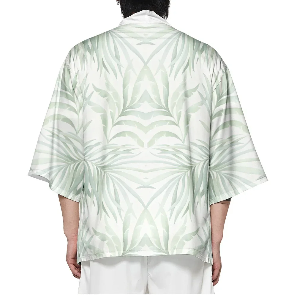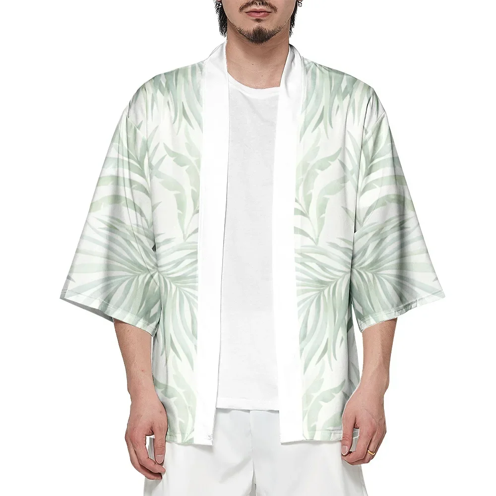 Summer Beach Yukata Fashion Haori Palm Leaf Tiger Print Cardigan Kimono Women Men White Shirts 4XL 5XL 6XL