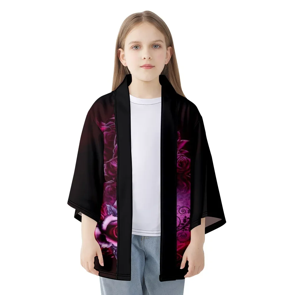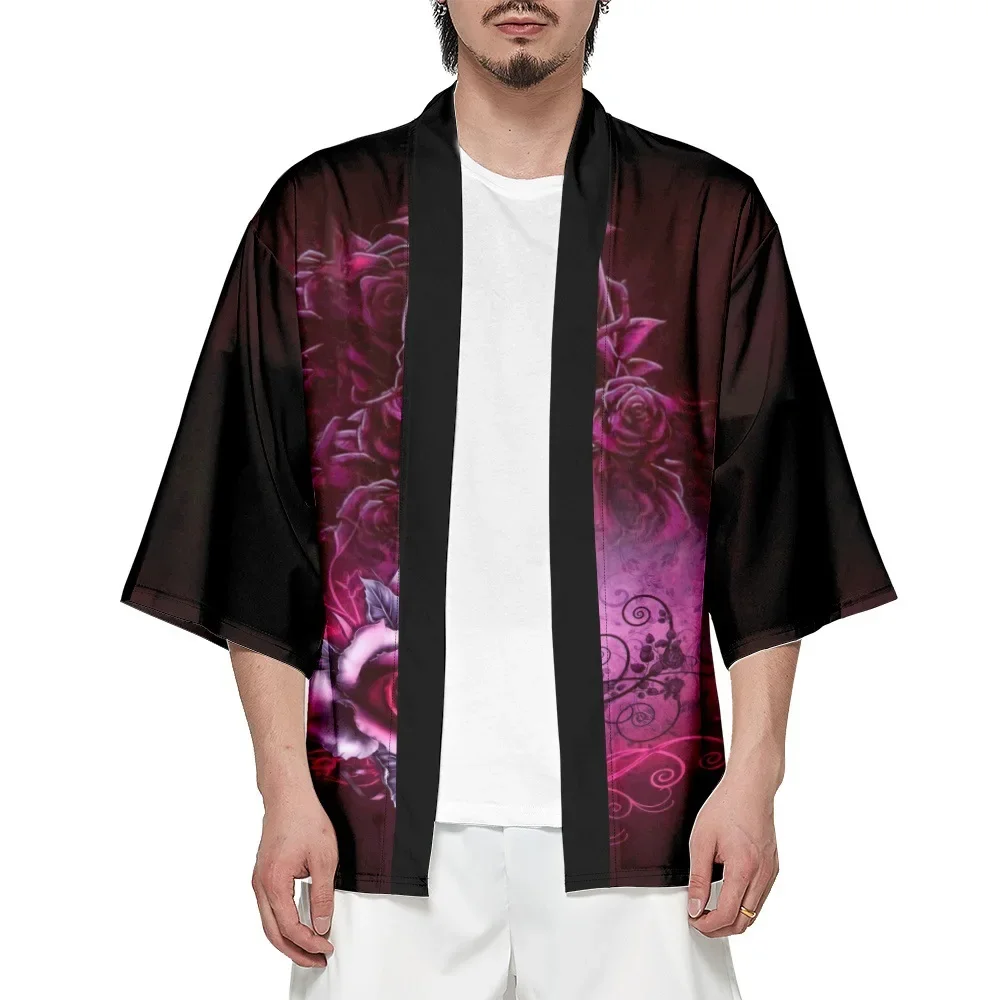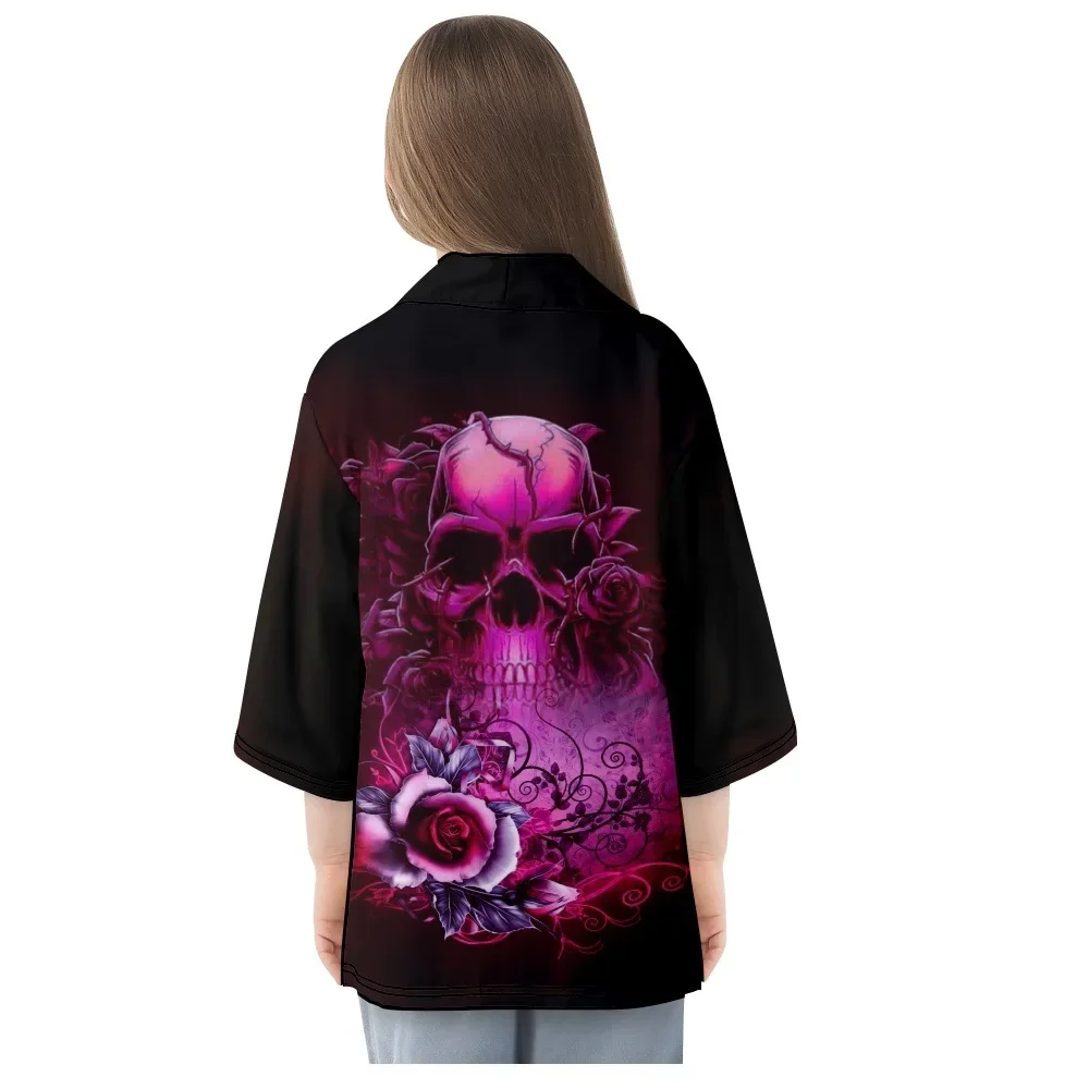 Traditional Asian Clothing 2023 Streetwear Skull Rose Print Cardigan Japanese Kimono Women Men Haori Yukata