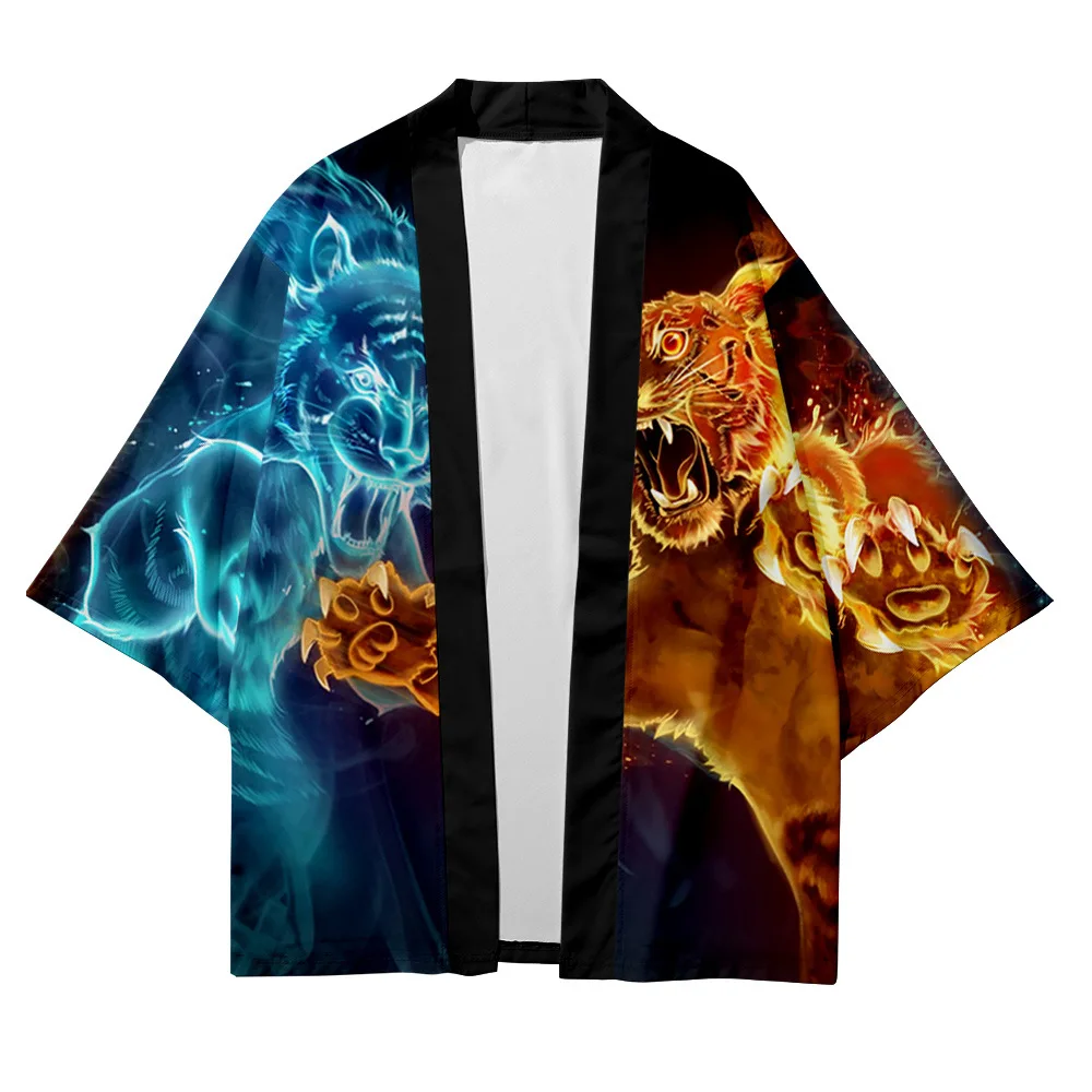 Harajuku Cosplay Shirts Yukata Haori Kimono Oversized Fashion Animal Tiger Print Japanese Robe Cardigan Women Men Tops