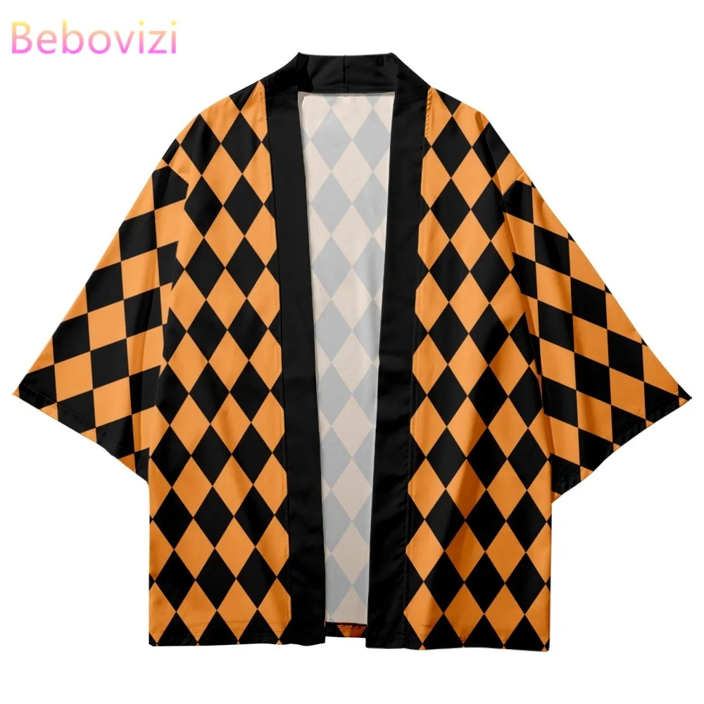 Hot Sale Traditional Style Plaid Print Kimono Women Men Japanese Streetwear Cardigan Haori Jackets Casual Outerwear K20