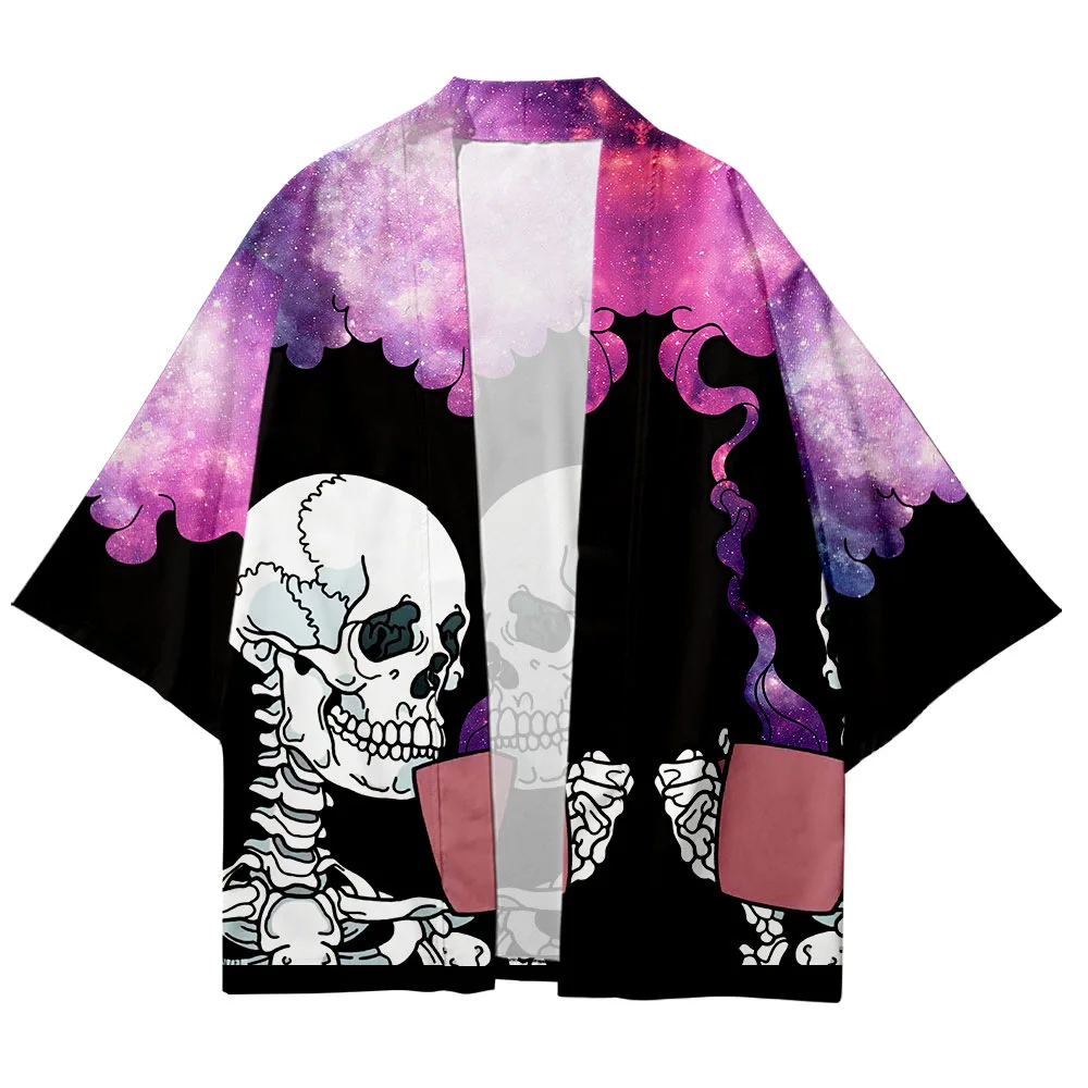 Plus Size 6XL 5XL 4XL 3XL XXL Skull Print Loose Japanese Cardigan Women Men Harajuku Kimono Cosplay Tops Blouse Yukata Clothing