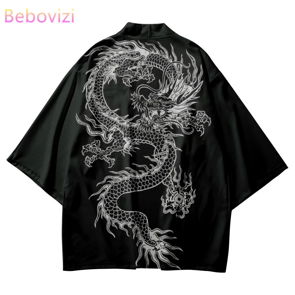 Men Women Black Loose Yukata Cardigan Cosplay Haori Chinese Dragon Print Traditional Kimono Japanese Style Samurai Asia Clothing