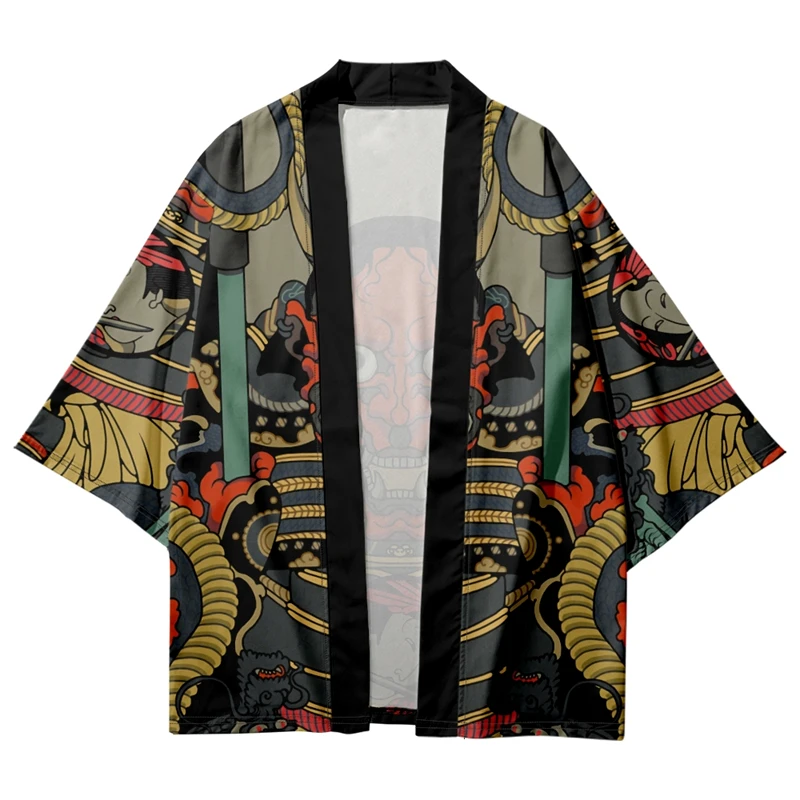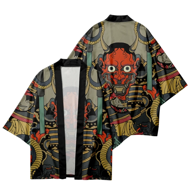 Harajuku Streetwear Demon Print Shirts 2023 Kimono Traditional Cardigan Men Japanese Ukiyos Style Haori Women