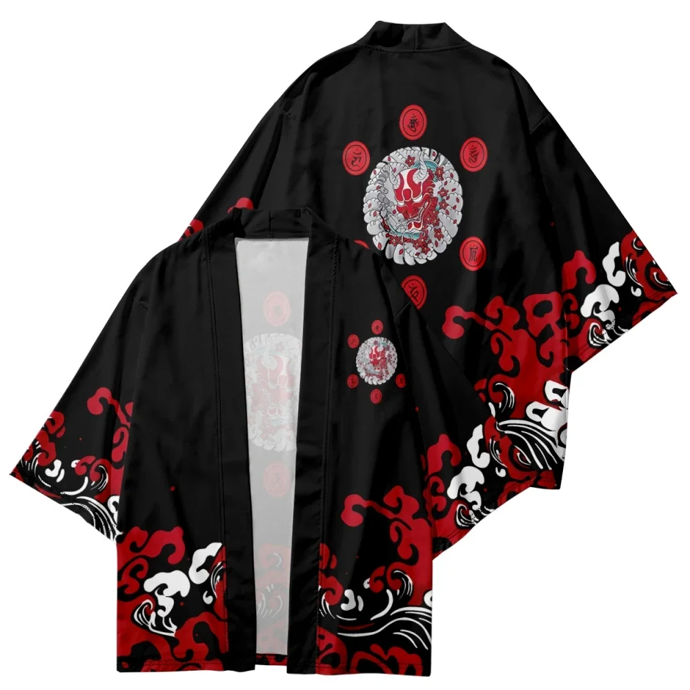 Plus Size 2023 Women Men Yukata Beach Haori Traditional Japanese Demon Wave Print Kimono Cardigan Cosplay Shirt