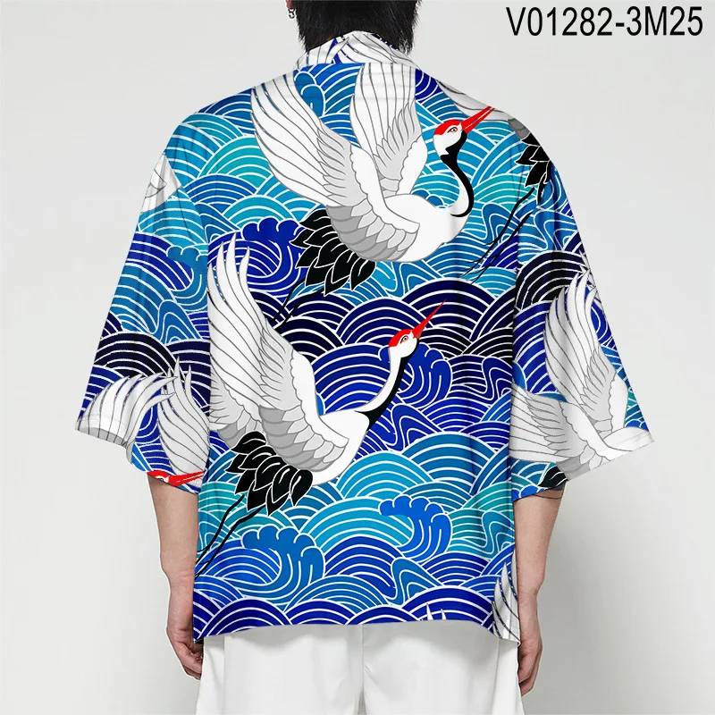Hot Sale Plus Size Crane Street Fashion Beach Japanese Kimono Mujer Robe Cardigan Men Shirts Yukata Haori Women's Clothing