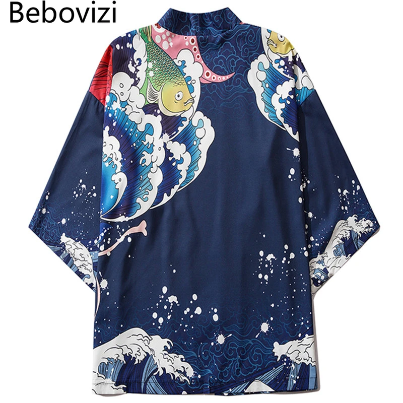 Japanese Samurai Clothing Traditional Japanese Clothing Carp Print Kimono Cardigan Men Japanese Obi Male Yukata Men's Haori