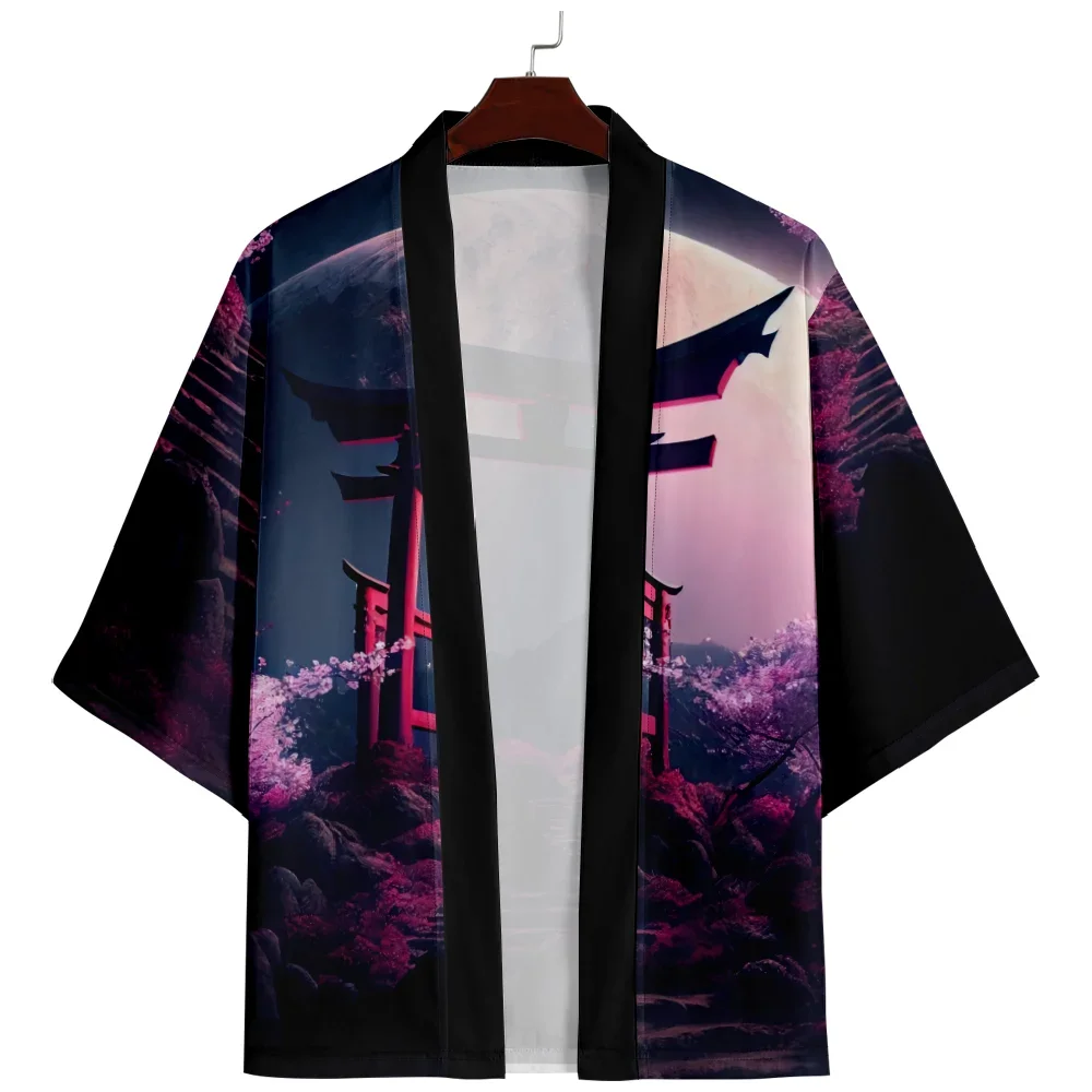New Design Fushimi Inari Shrine Beach Women Print Haori Yukata Fashion Japanese Cardigan Kimono Traditional Asian Clothing 2024