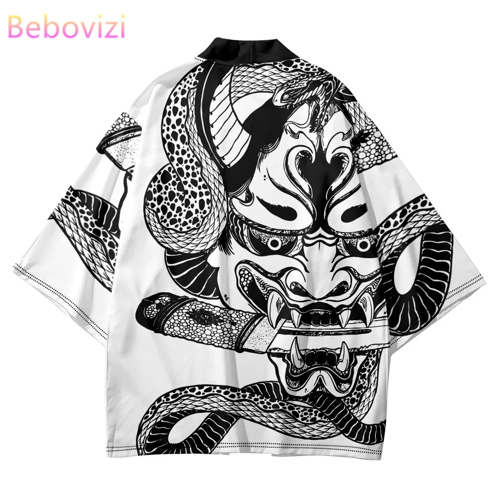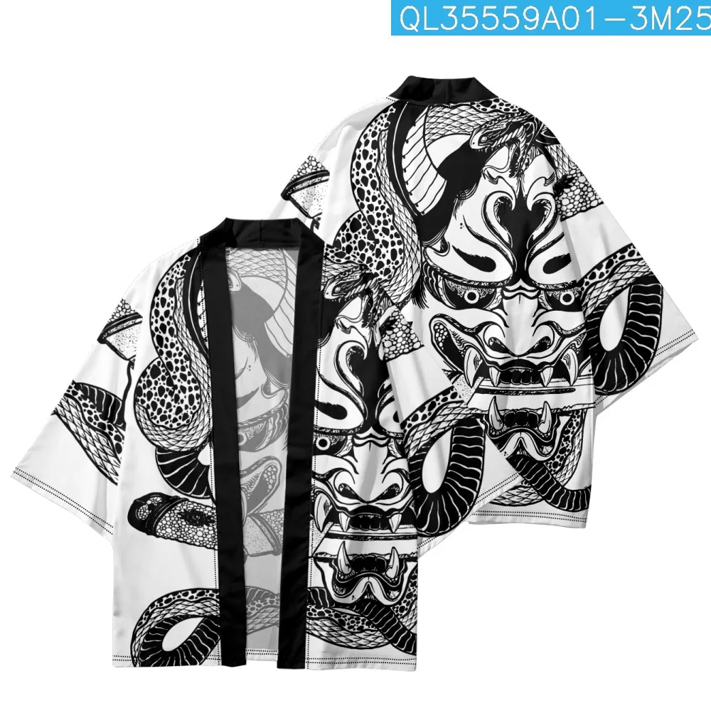 Streetwear Plus Size Snake Demon Print Haori Fashion Men Women Cardigan Beach Yukata Asian Clothes Japanese Cosplay Kimono