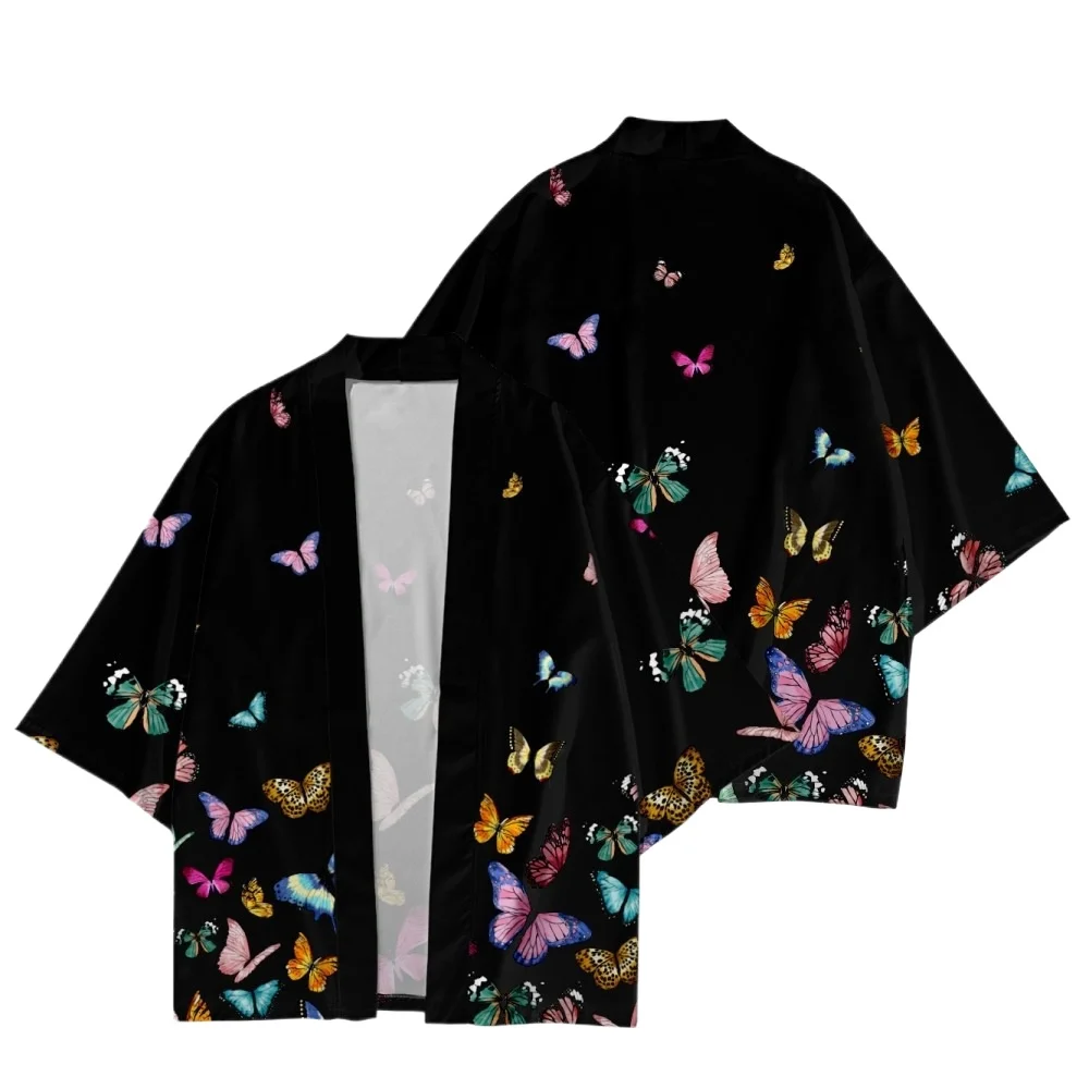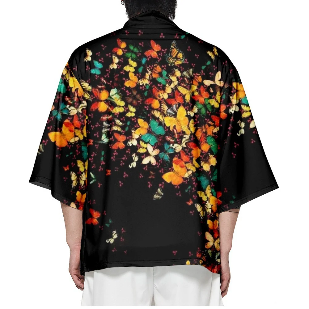 Summer Samurai Kimono Cosplay Men Japanese Fashion Retro Butterfly Print Haori Streetwear Kimono Yukata Cardigan Robe Hot Sale