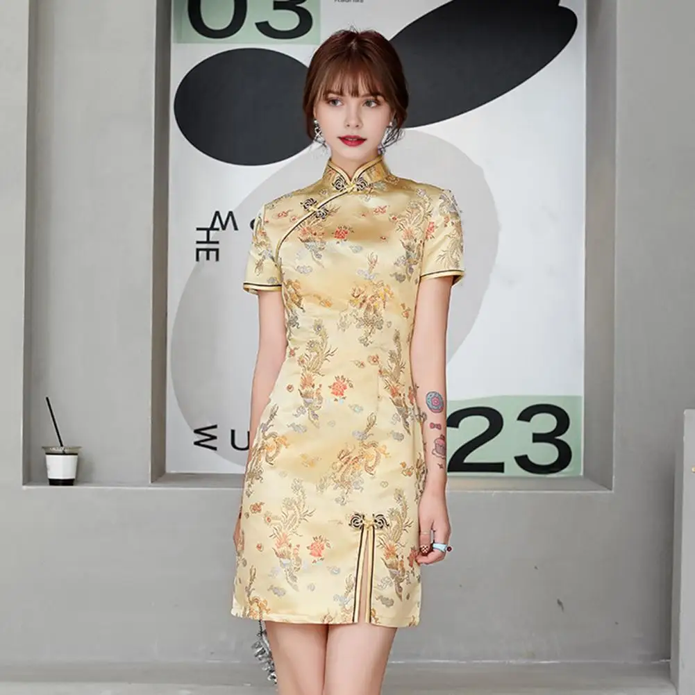 Name | Chinese Cheongsam Dress Women Retro Cheongsam Elegant Dragon Phoenix Print Cheongsam Dress for Women Slim Fit Retro for Wedding |