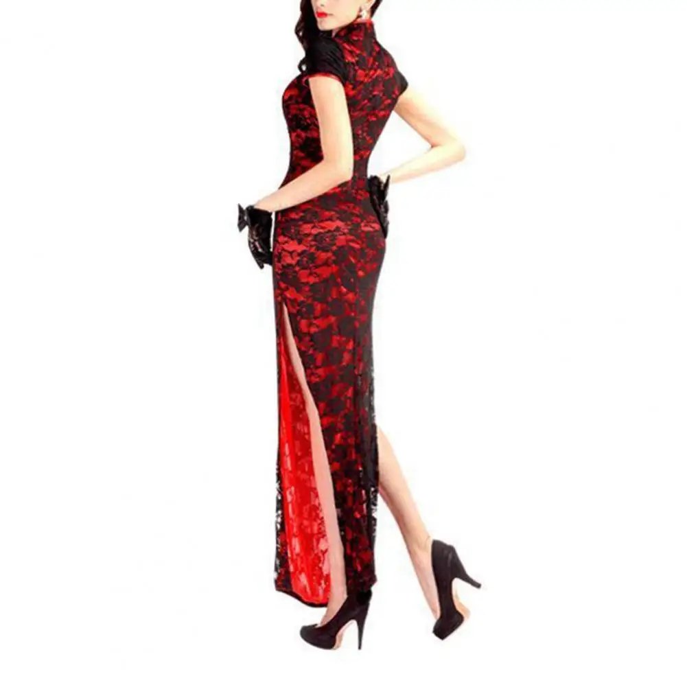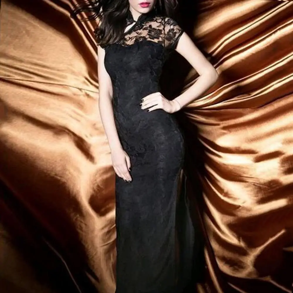 Name | Chinese Traditional Dress Double-layered Lace Women Cheongsam High Split Ankle Length Women Chinese Dress Lady Qipao vestidos |